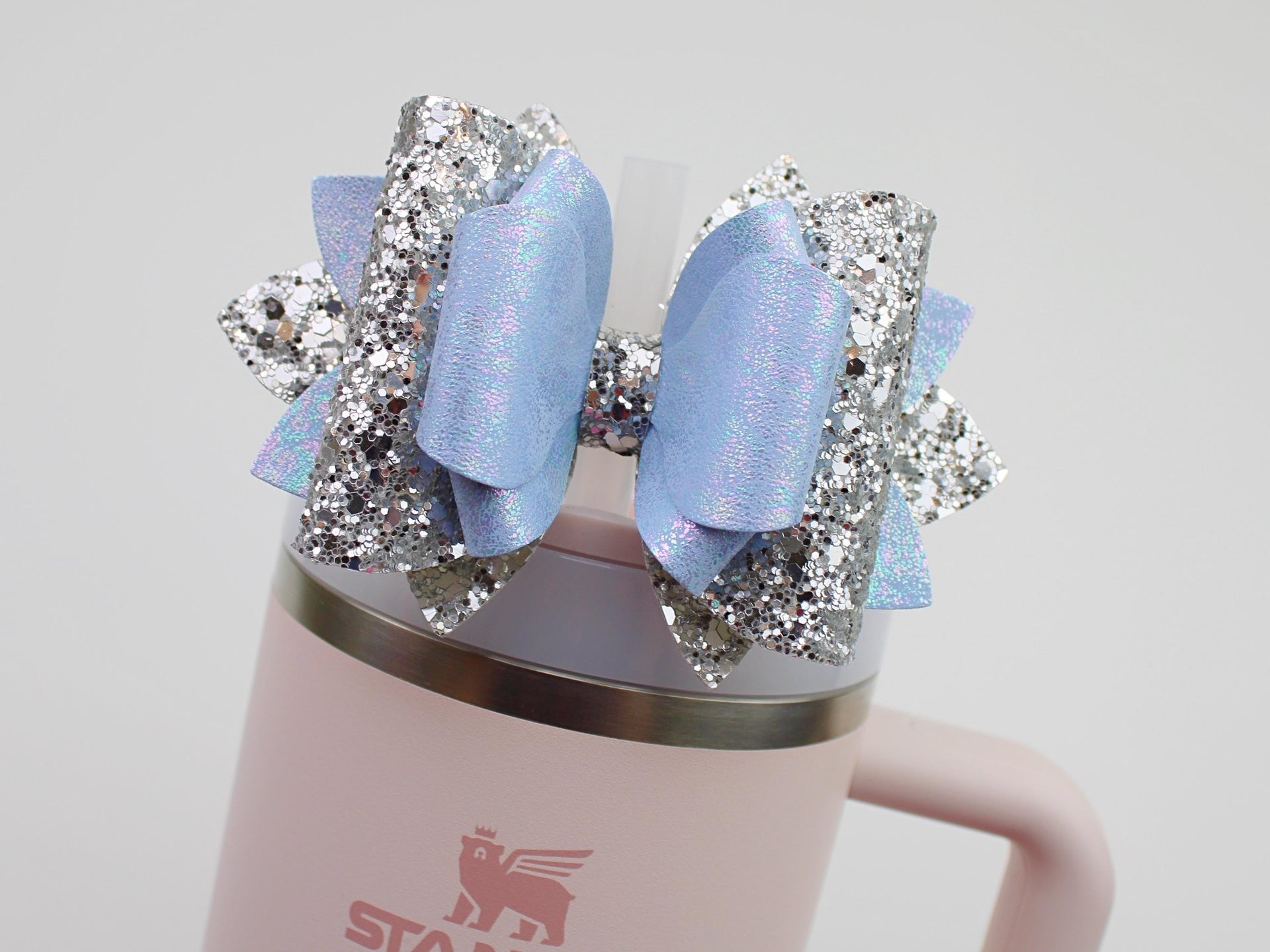 🎀 This Beautiful Bow is made out of faux leather, glitter fabric and designed to fit Stanley straws. Size: 4.5 inches. Each bow is handmade, ensuring a unique touch in every creation. 🎨 Due to screen variations, actual colors may slightly differ. 📦 This listing is for the bow only.Â