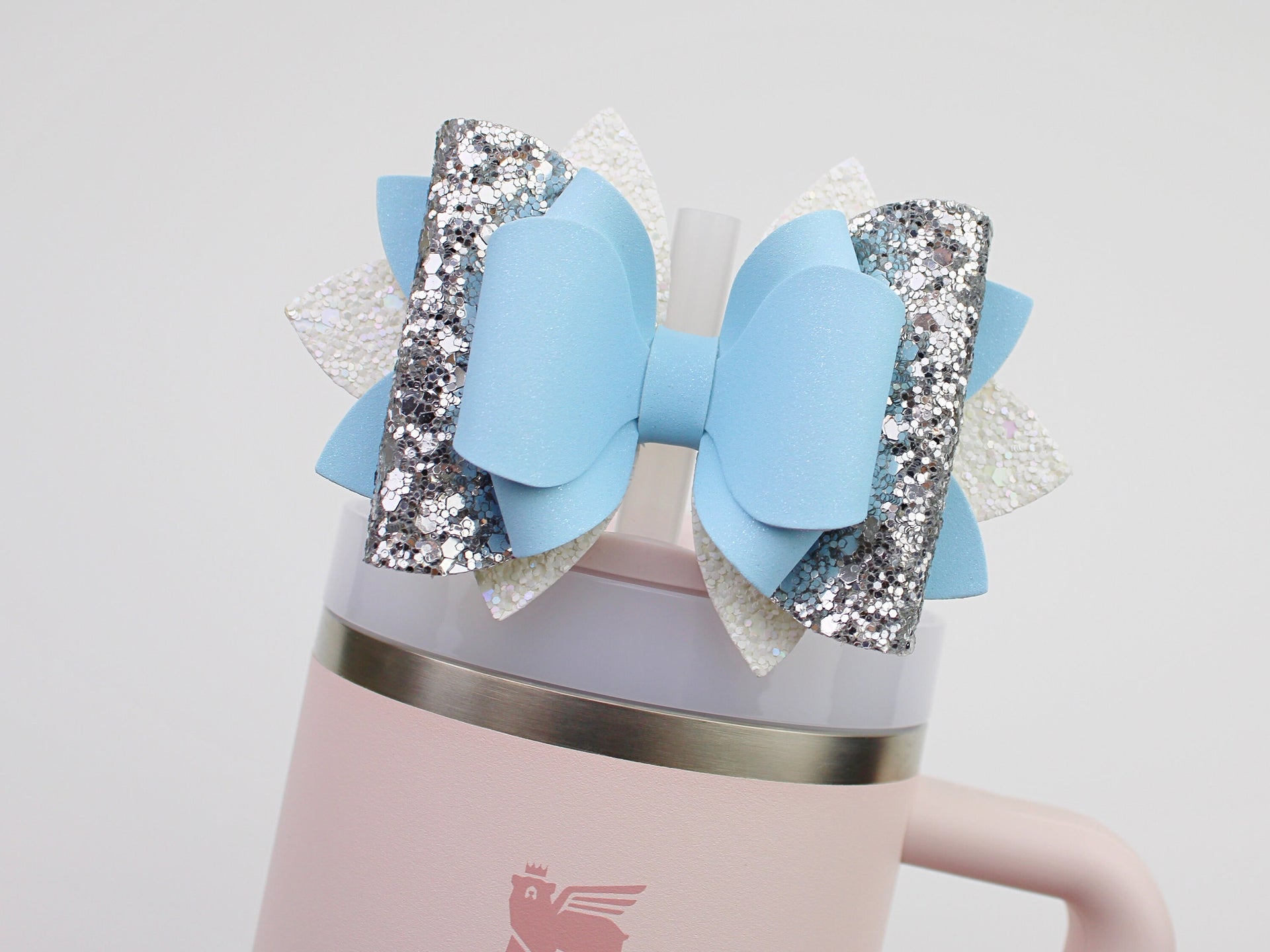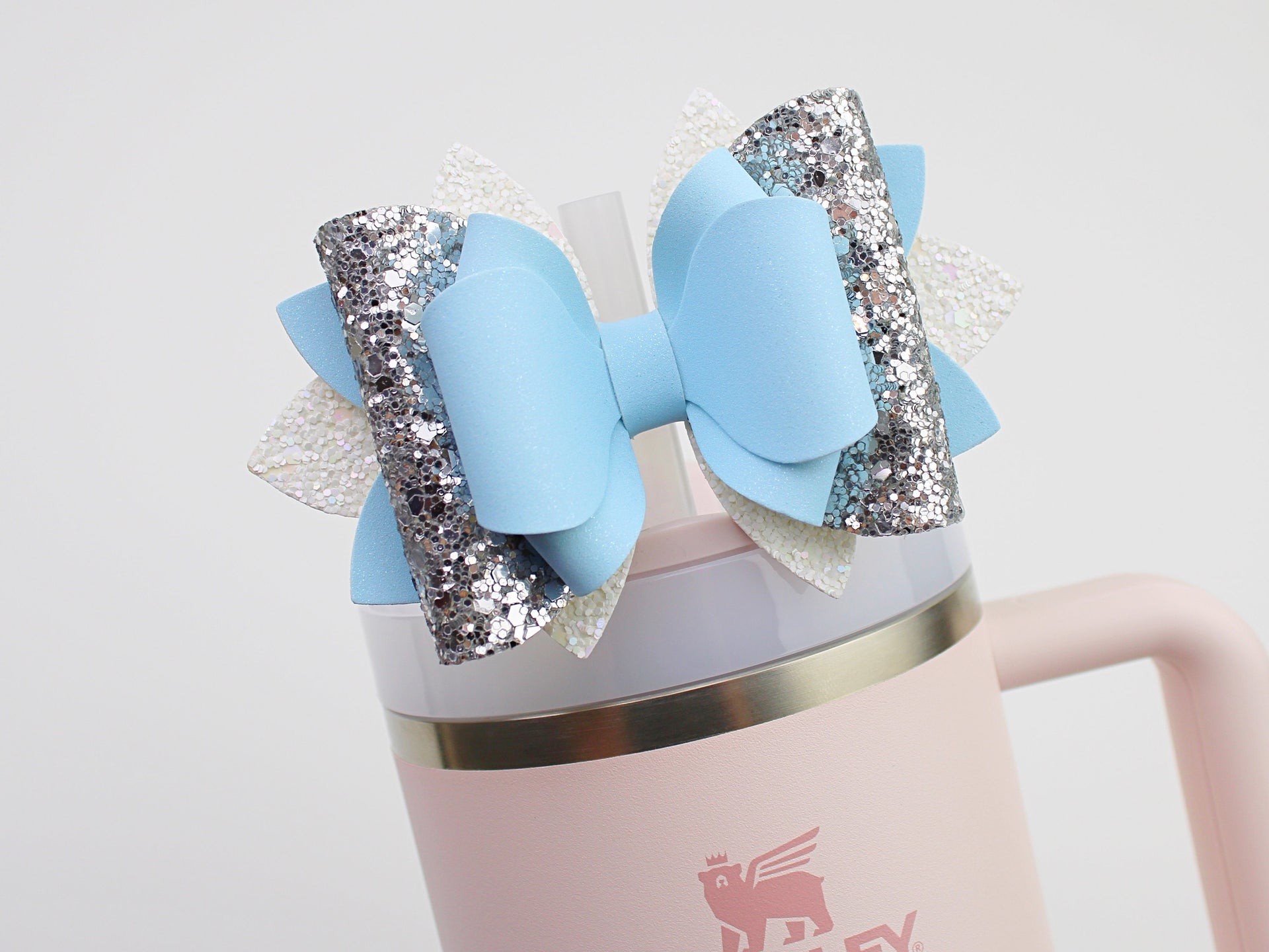 🎀 This Beautiful Bow is made out of faux leather, glitter fabric and designed to fit Stanley straws. Size: 4.5 inches. Each bow is handmade, ensuring a unique touch in every creation. 🎨 Due to screen variations, actual colors may slightly differ. 📦 This listing is for the bow only.