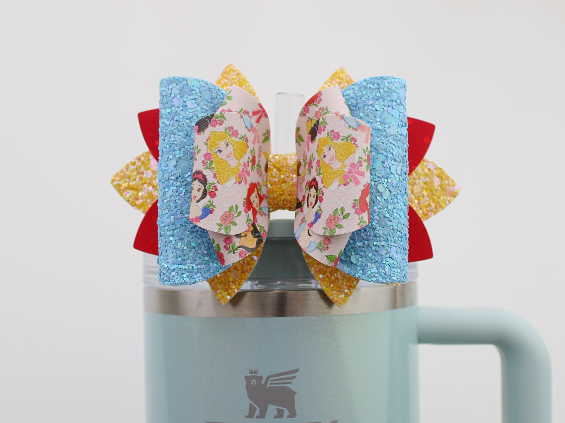 🎀 This Beautiful Bow is made out of faux leather, glitter fabric and designed to fit Stanley straws. Size: 4.5 inches. Each bow is handmade, ensuring a unique touch in every creation. 🎨 Due to screen variations, actual colors may slightly differ. 📦 This listing is for the bow only.