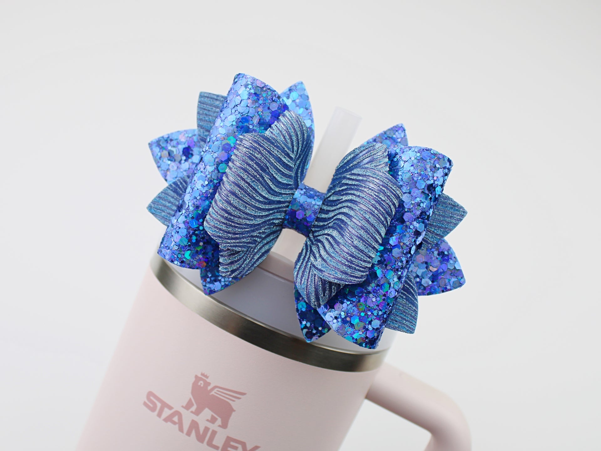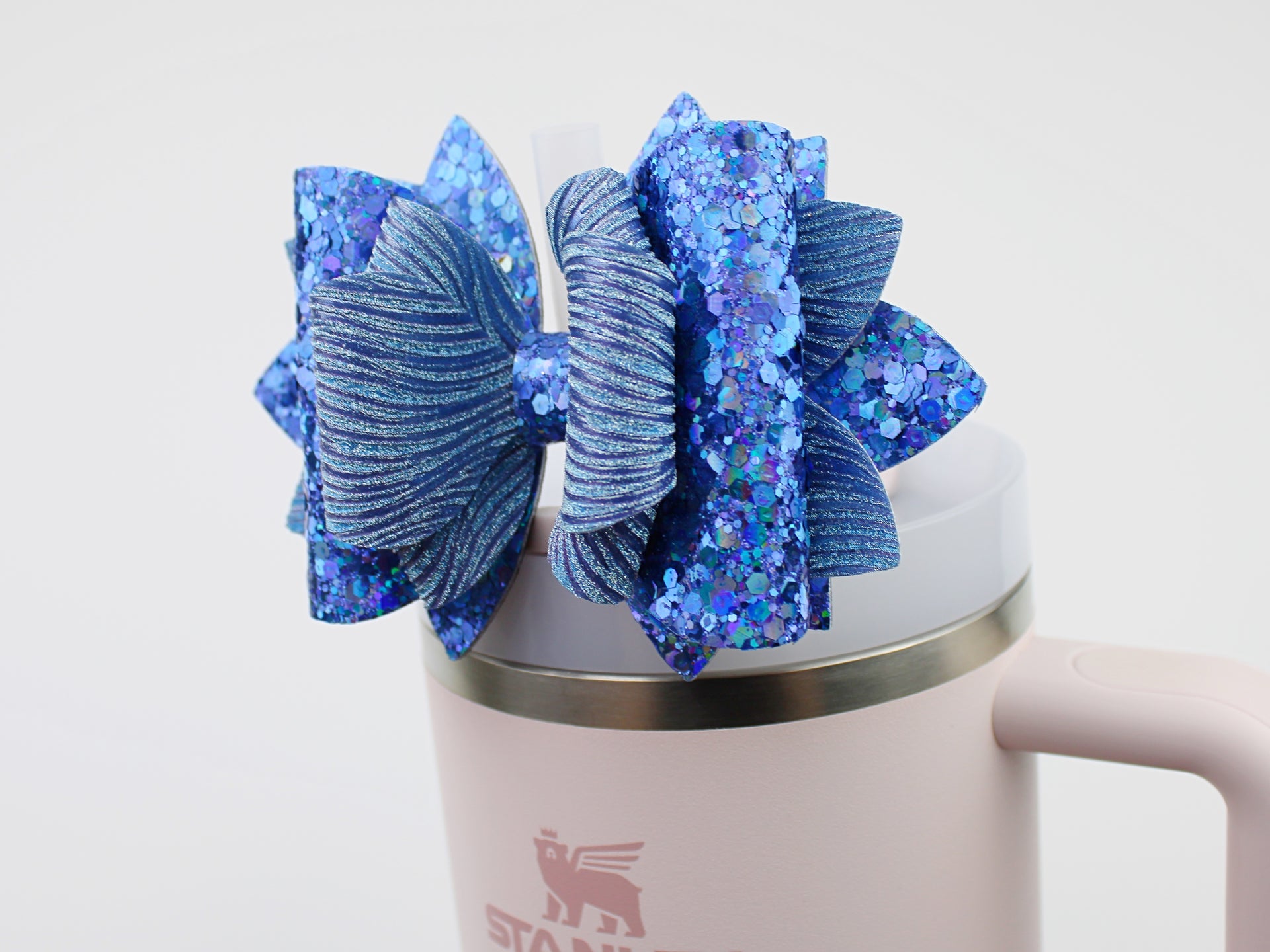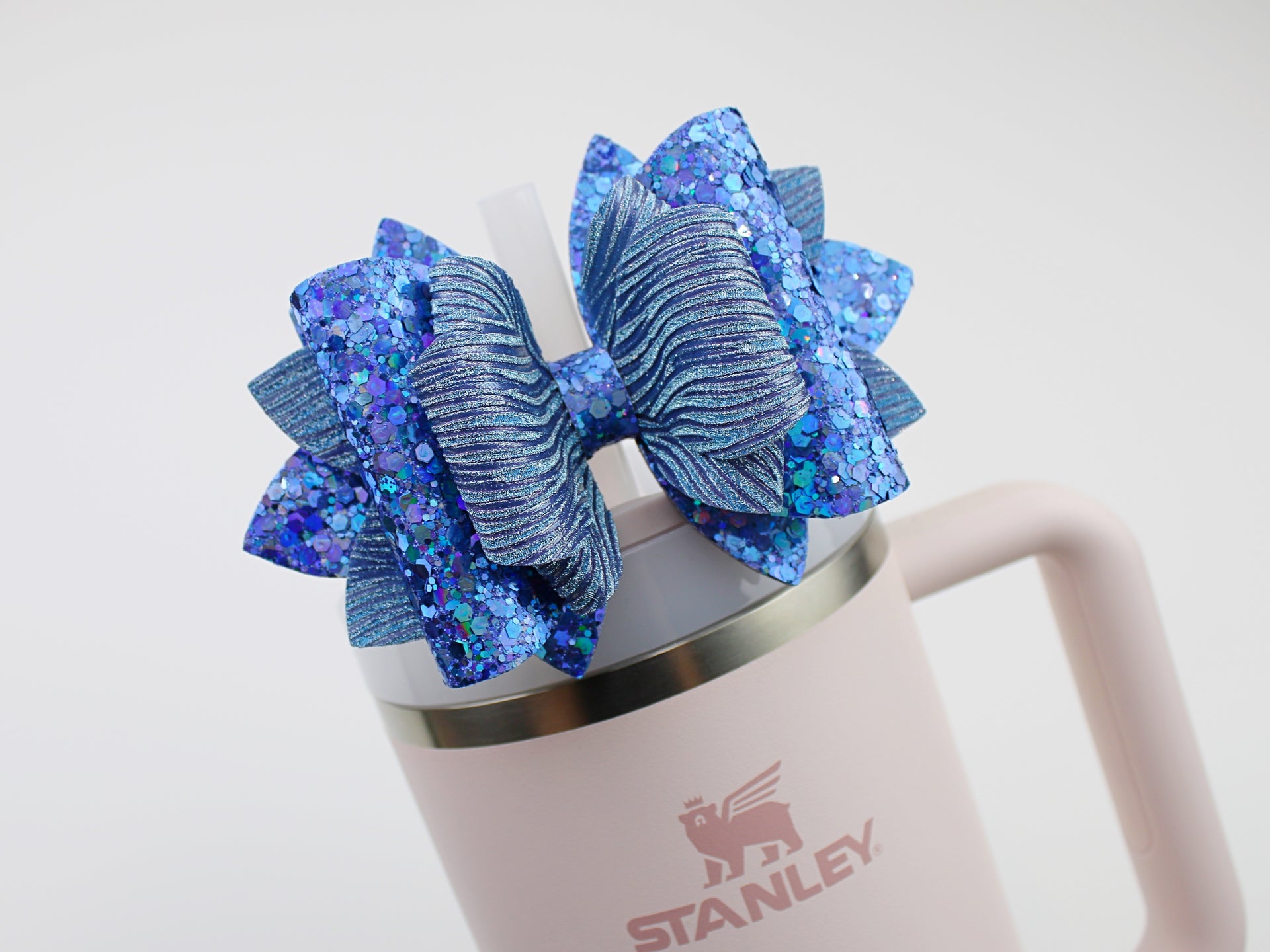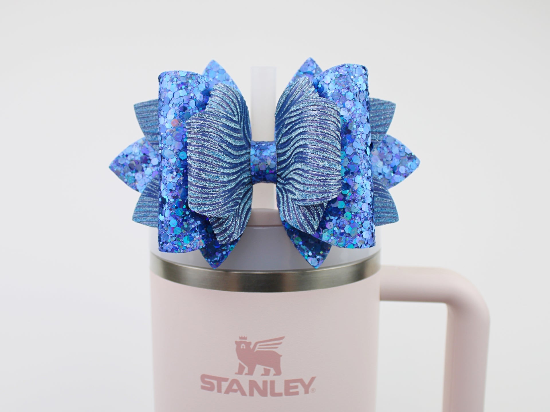 🎀 This Beautiful Bow is made out of faux leather, glitter fabric and designed to fit Stanley straws. Size: 4.5 inches. Each bow is handmade, ensuring a unique touch in every creation. 🎨 Due to screen variations, actual colors may slightly differ. 🎀 This listing is for the bow only.