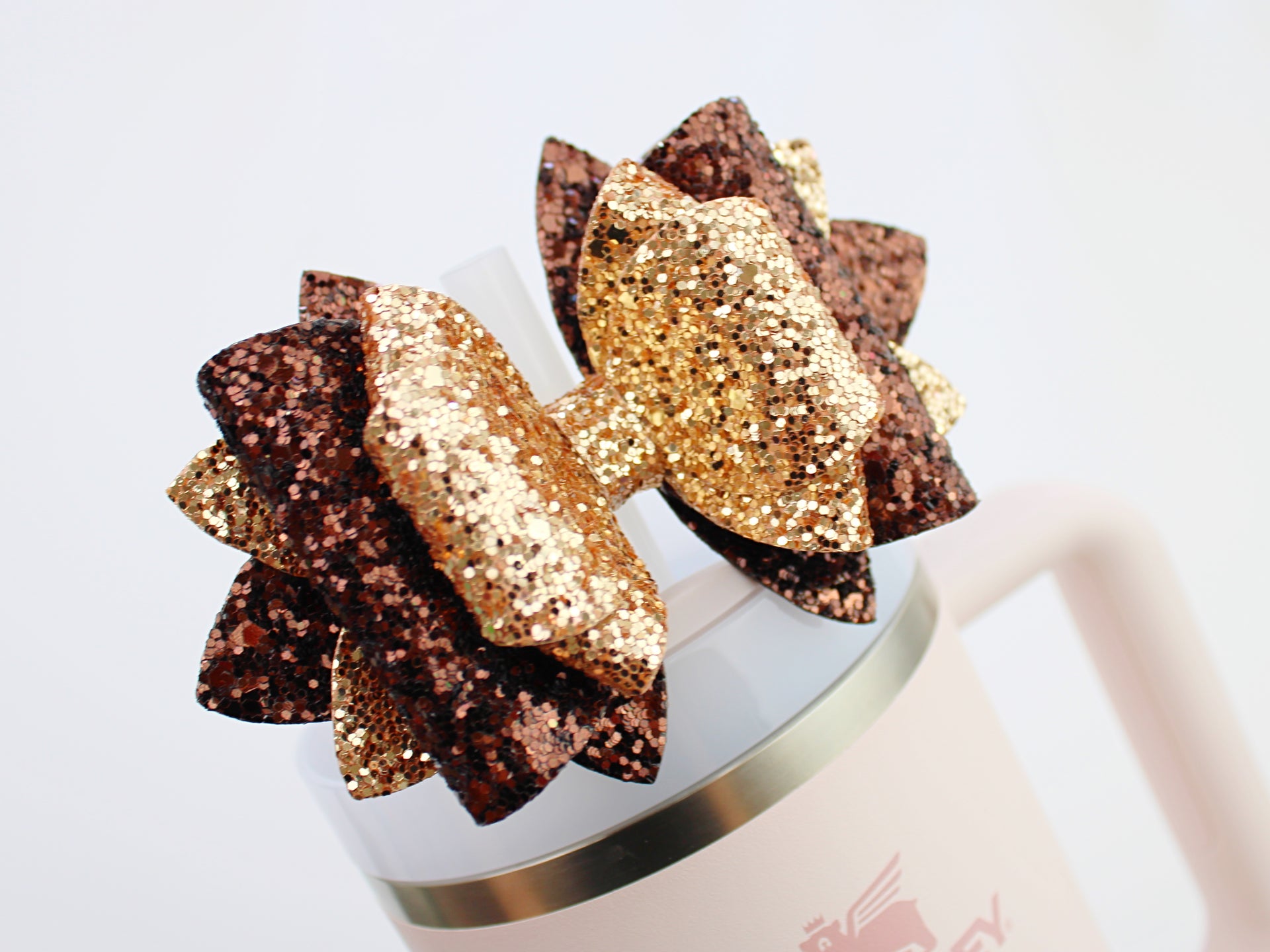 🎀 This Beautiful Bow is made out of glitter fabric and designed to fit Stanley straws. Size: 4.5 inches. Each bow is handmade, ensuring a unique touch in every creation. 🎨 Due to screen variations, actual colors may slightly differ. 🎀 This listing is for the bow only.