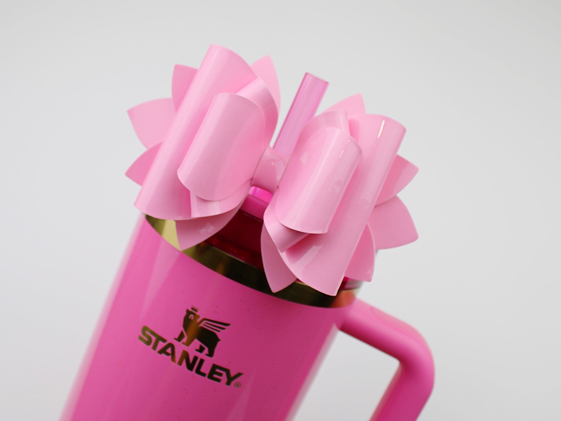 🎀 This Beautiful Bow is made out of faux leather, glitter fabric and designed to fit Stanley straws. Size: 4.5 inches. Each bow is handmade, ensuring a unique touch in every creation. 🎨 Due to screen variations, actual colors may slightly differ. 🎀 This listing is for the bow only.