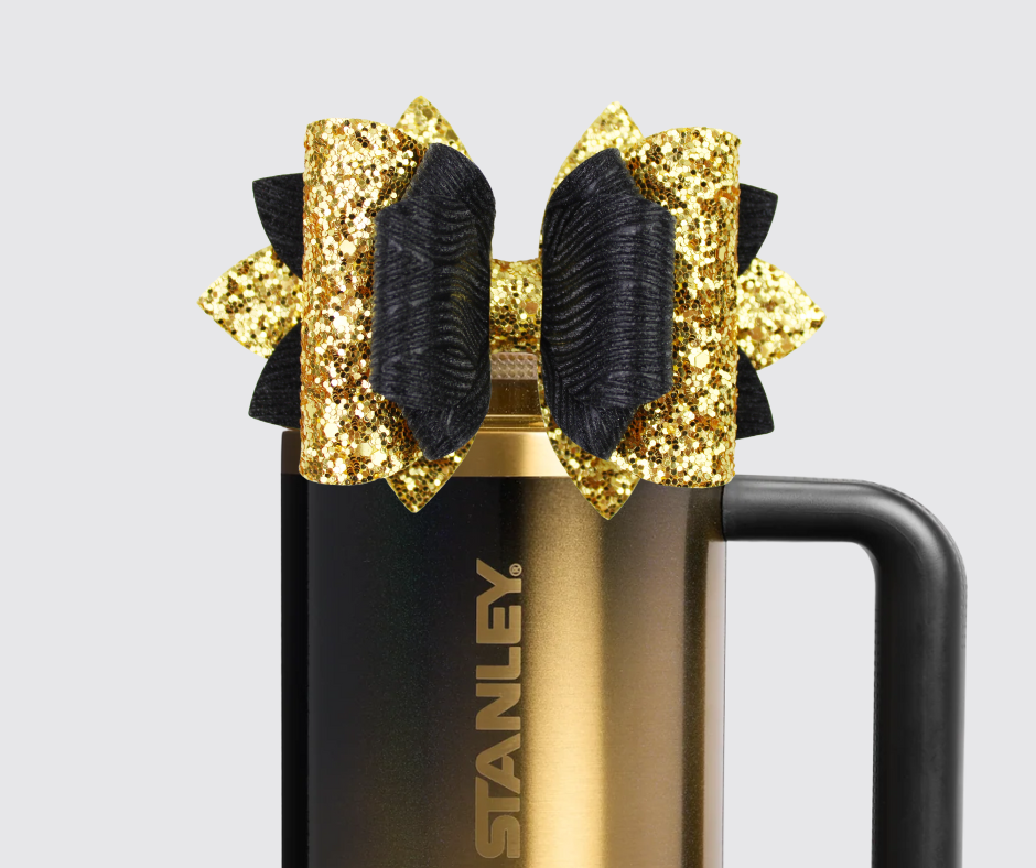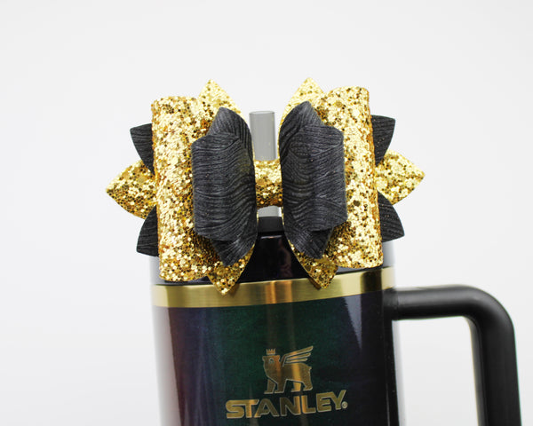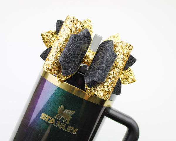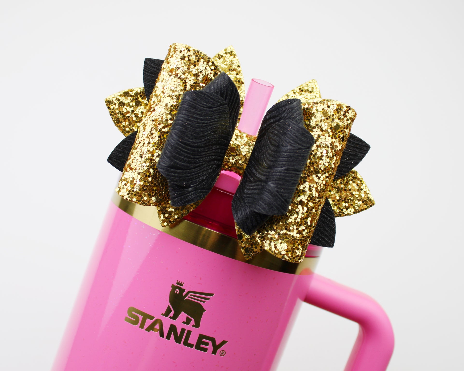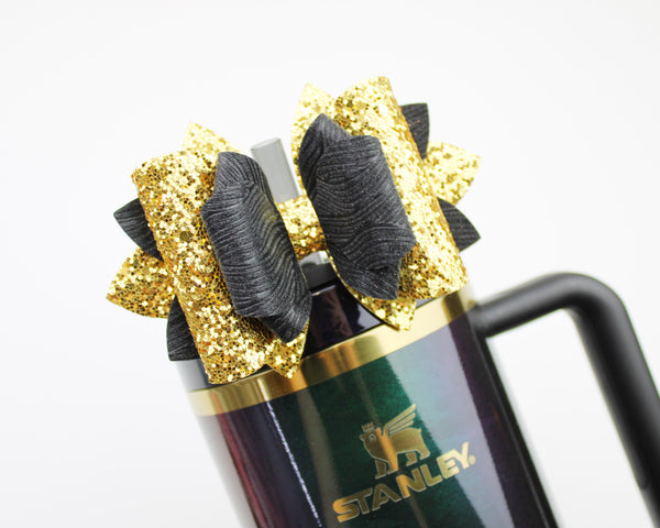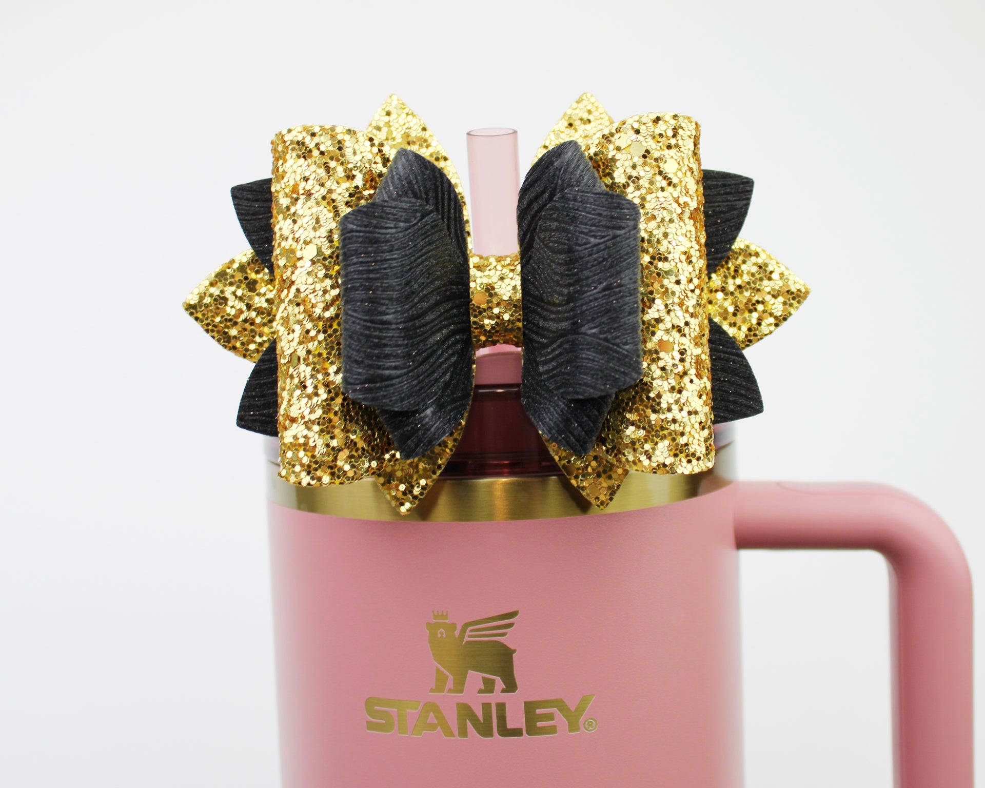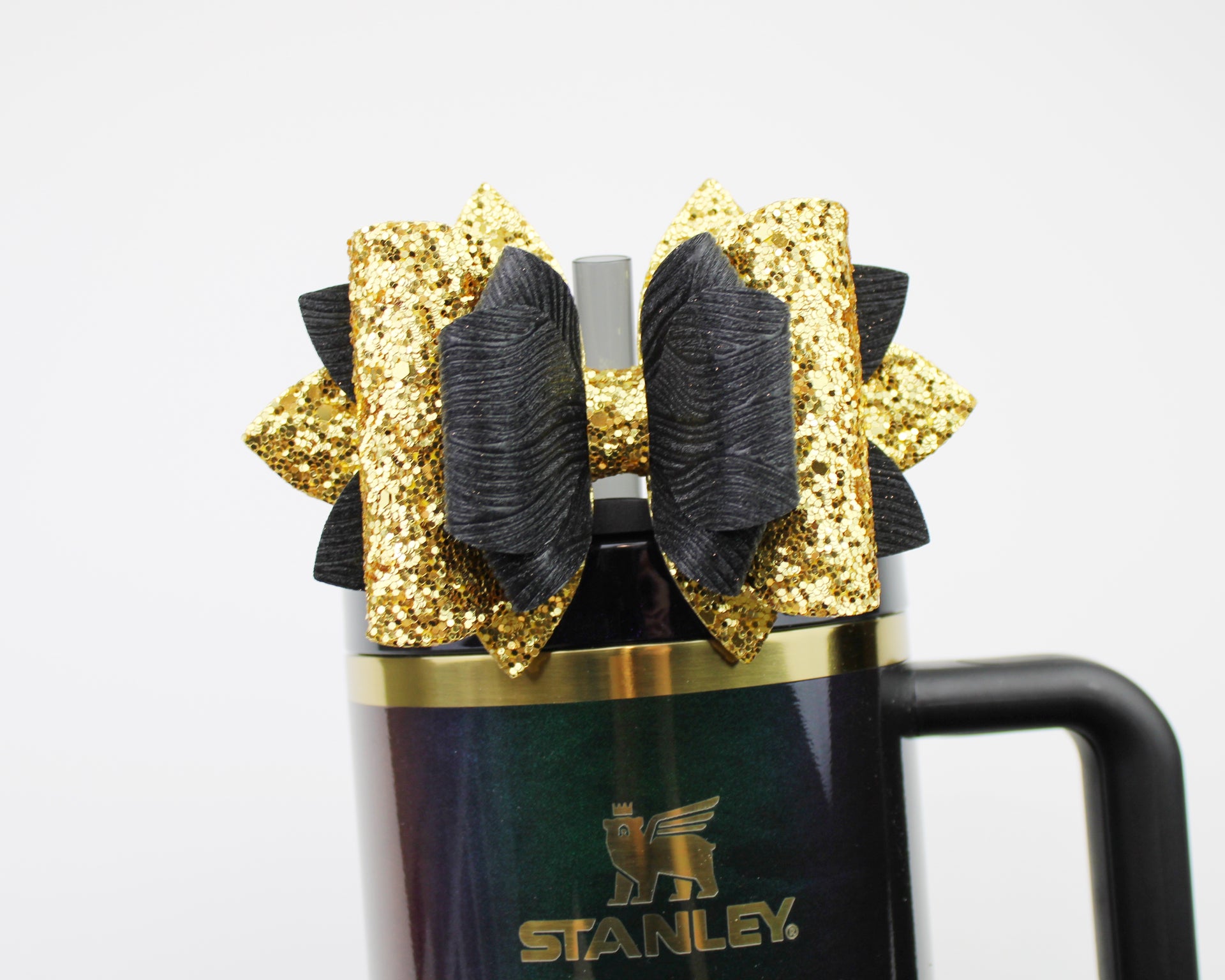 🎀 This Beautiful Bow is made out of faux leather, glitter fabric and designed to fit Stanley straws. Size: 4.5 inches. Each bow is handmade, ensuring a unique touch in every creation. 🎨 Due to screen variations, actual colors may slightly differ. 🎀 This listing is for the bow only.