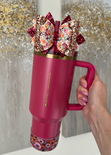 🎀 This Beautiful Bow is made out of faux leather, glitter fabric and designed to fit Stanley straws. Size: 4.5 inches. Each bow is handmade, ensuring a unique touch in every creation. 🎨 Due to screen variations, actual colors may slightly differ. 📦 This listing is for the bow only.