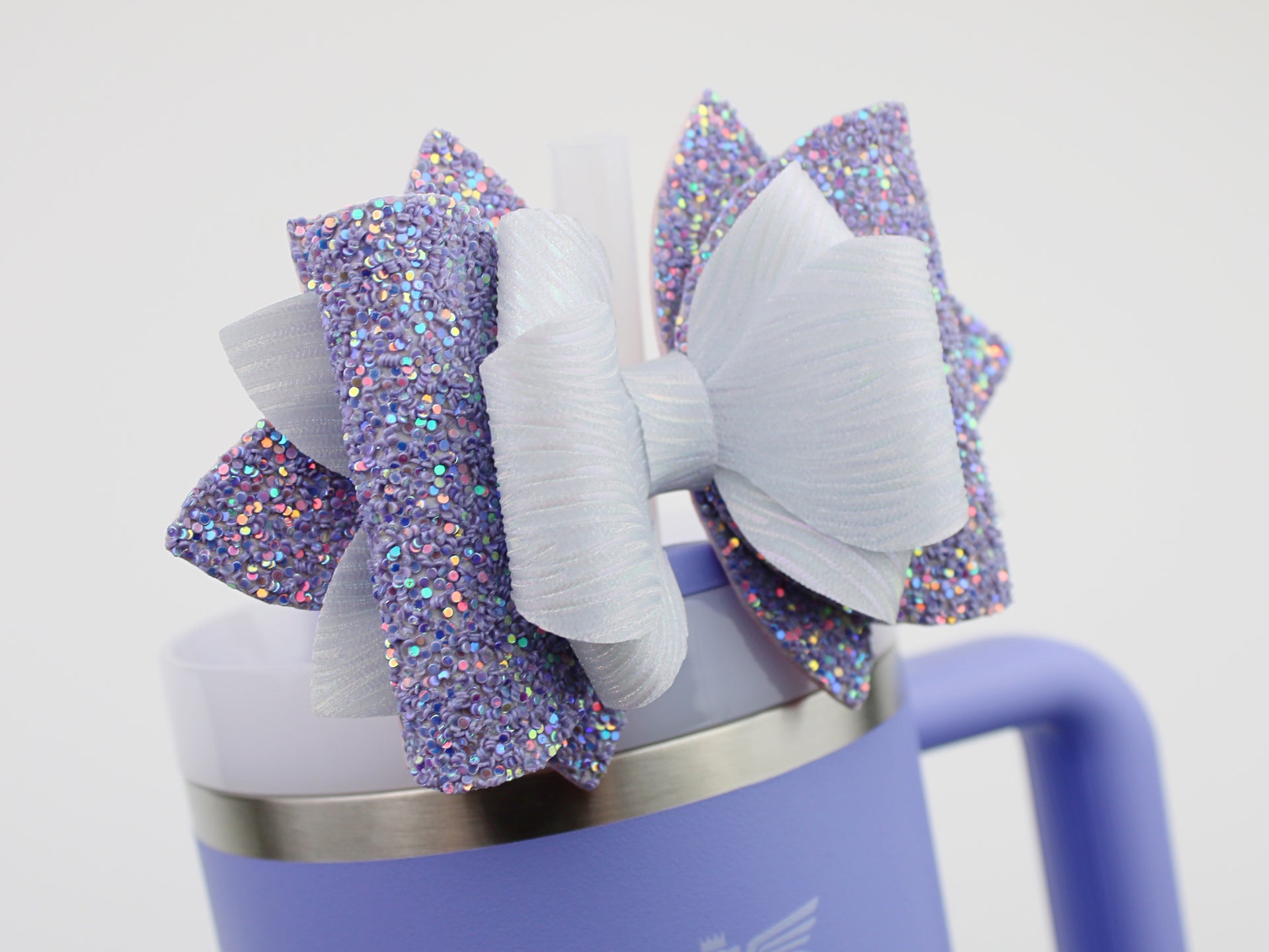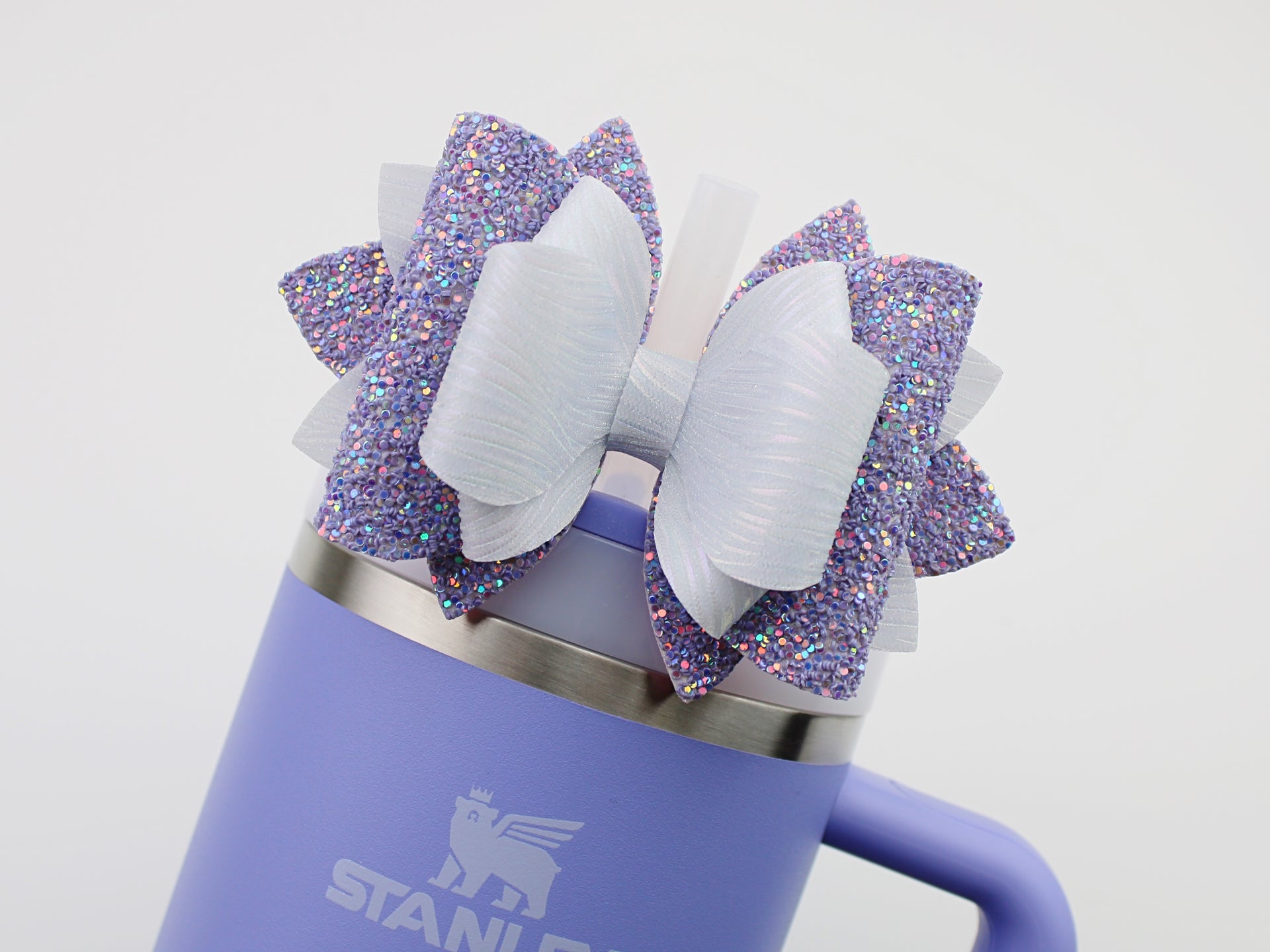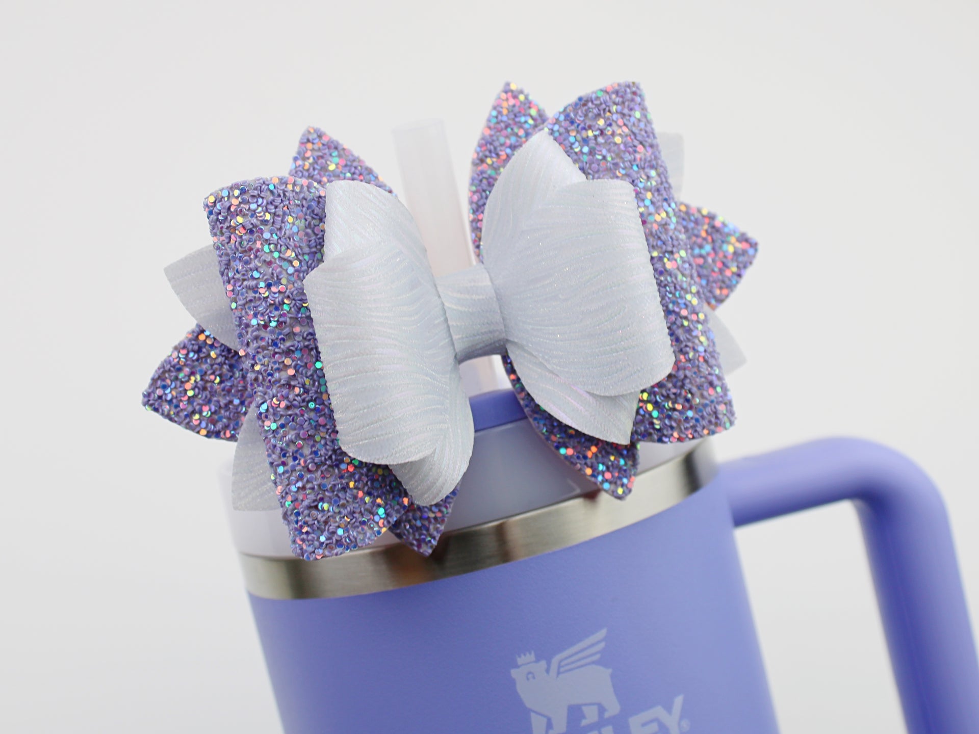 🎀 This Beautiful Bow is made out of faux leather, glitter fabric and designed to fit Stanley straws. Size: 4.5 inches. Each bow is handmade, ensuring a unique touch in every creation. 🎨 Due to screen variations, actual colors may slightly differ. 📦 This listing is for the bow only.