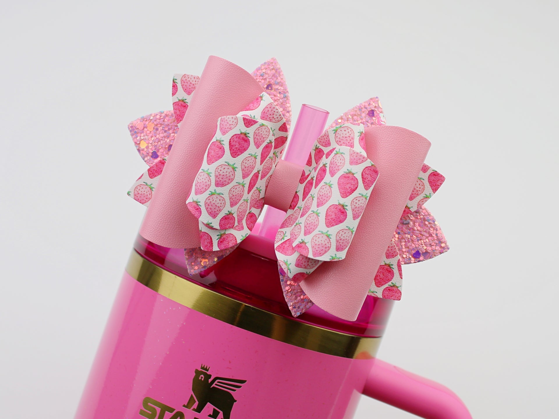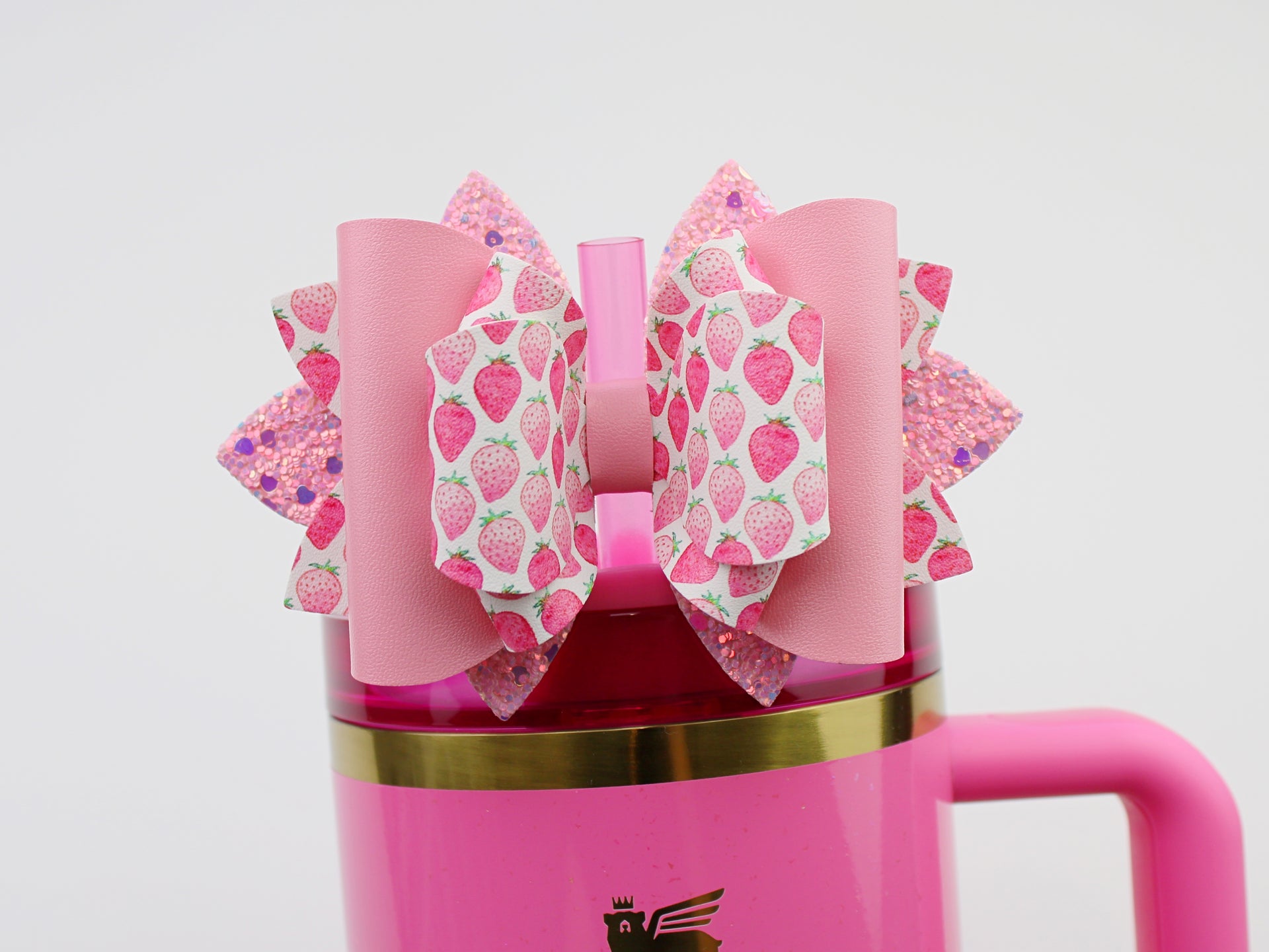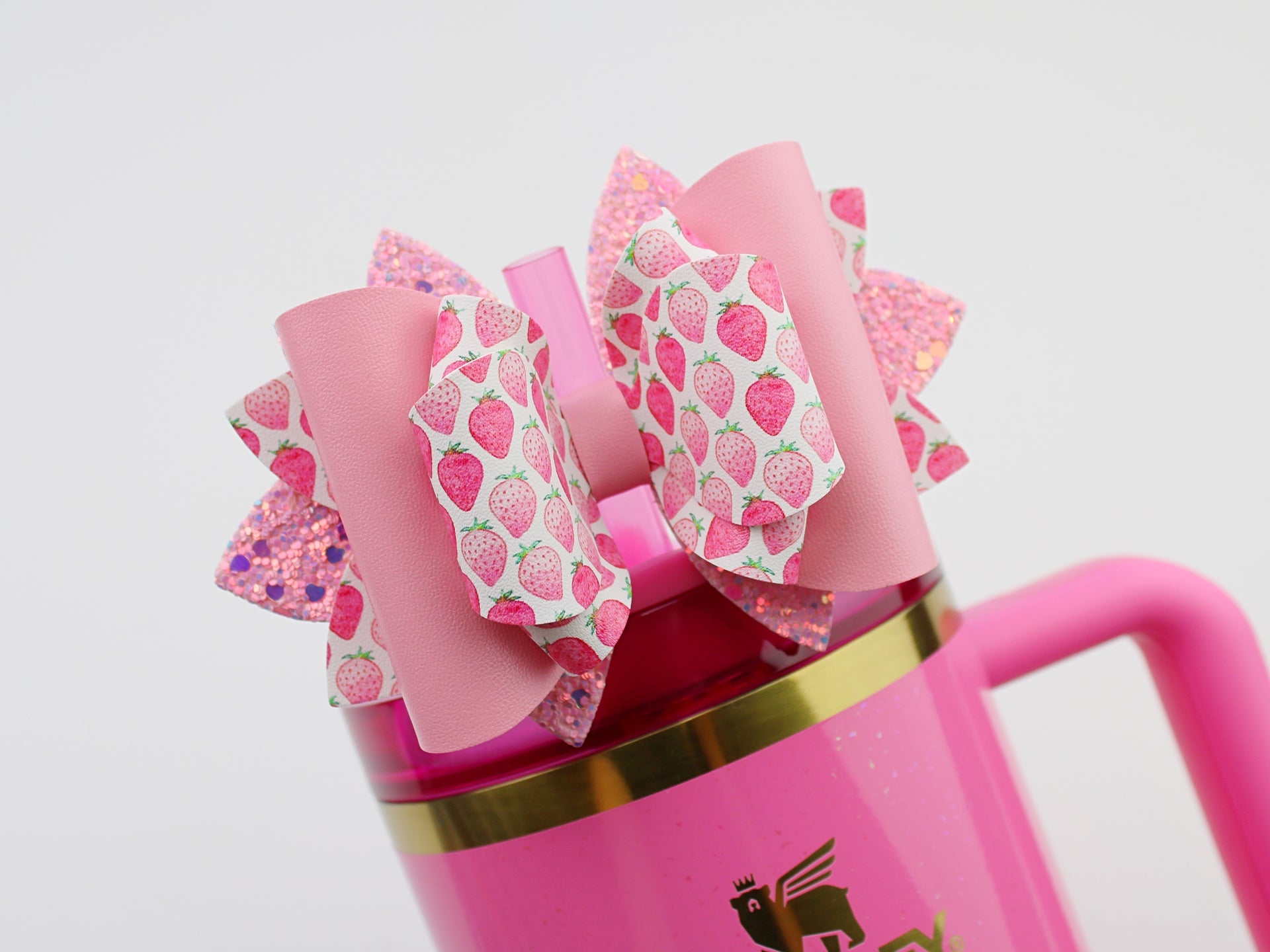 🎀 This Beautiful Bow is made out of faux leather, glitter fabric and designed to fit Stanley straws. Size: 4.5 inches. Each bow is handmade, ensuring a unique touch in every creation. 🎨 Due to screen variations, actual colors may slightly differ. 📦 This listing is for the bow only.