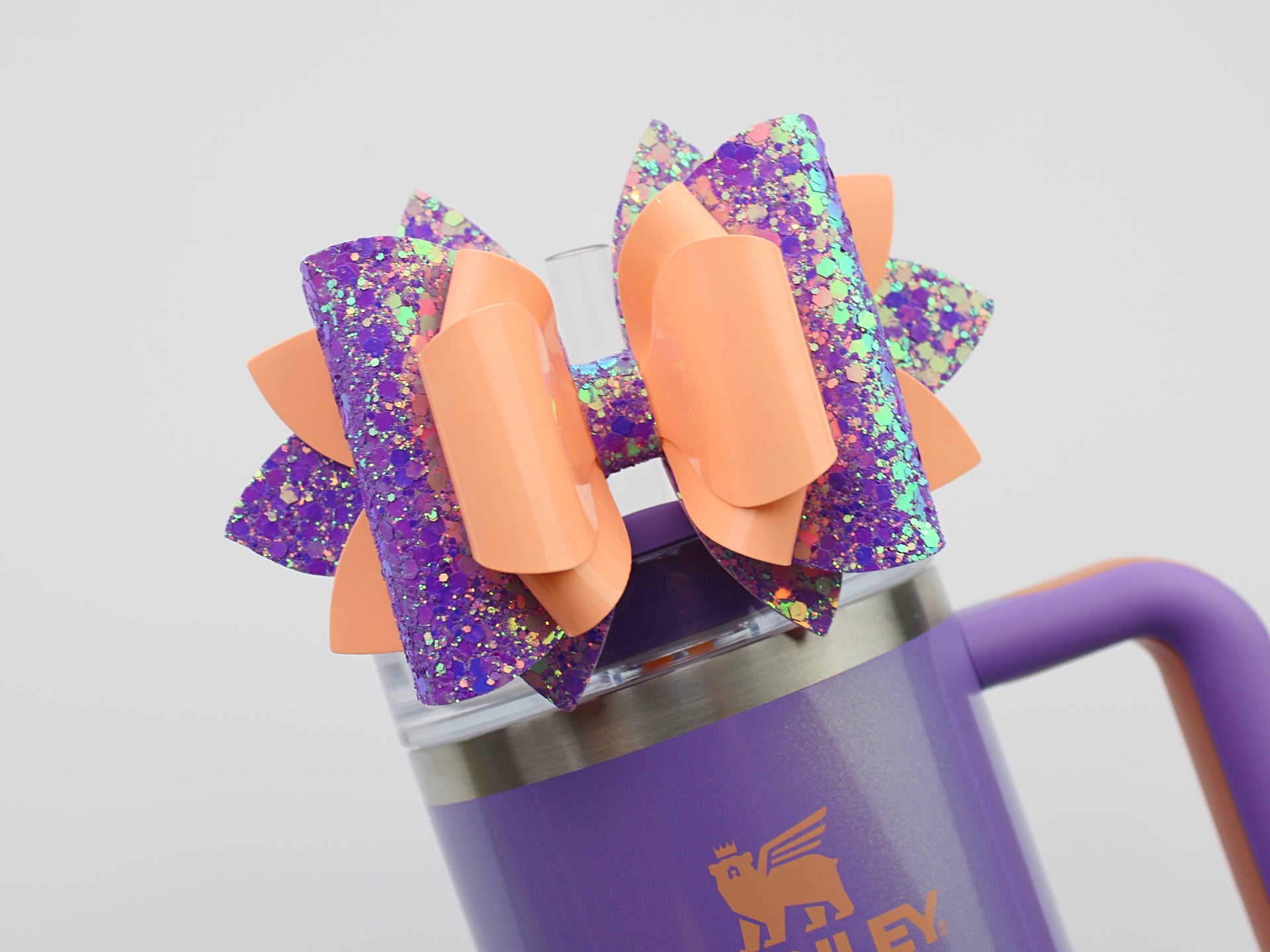 Purple Glitter & Glossy Orange Stanley Bow - Periwinkle Shimmer