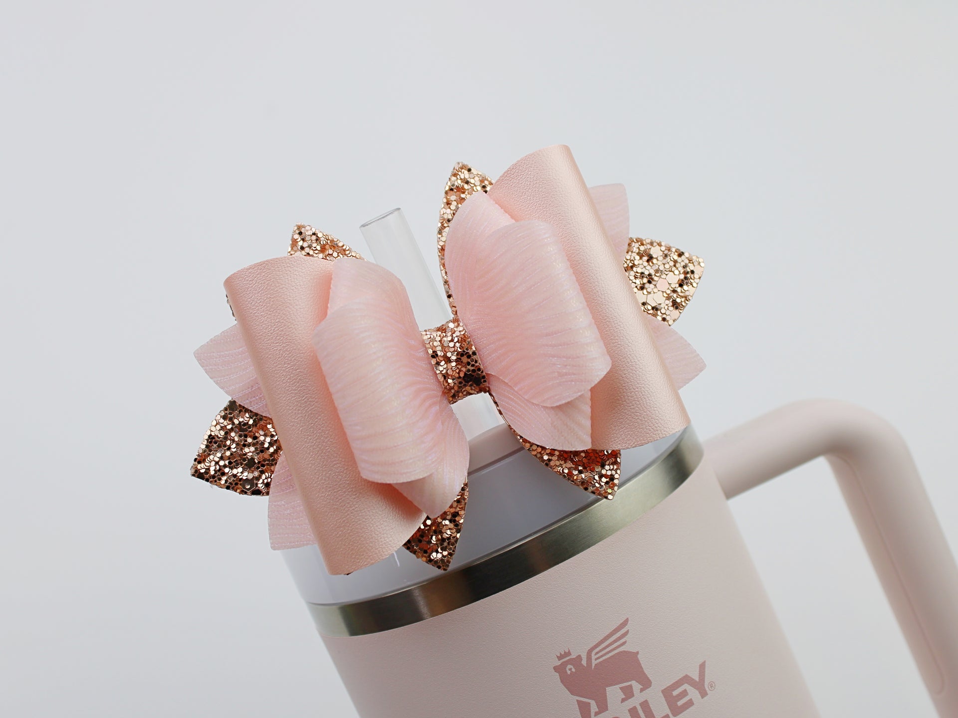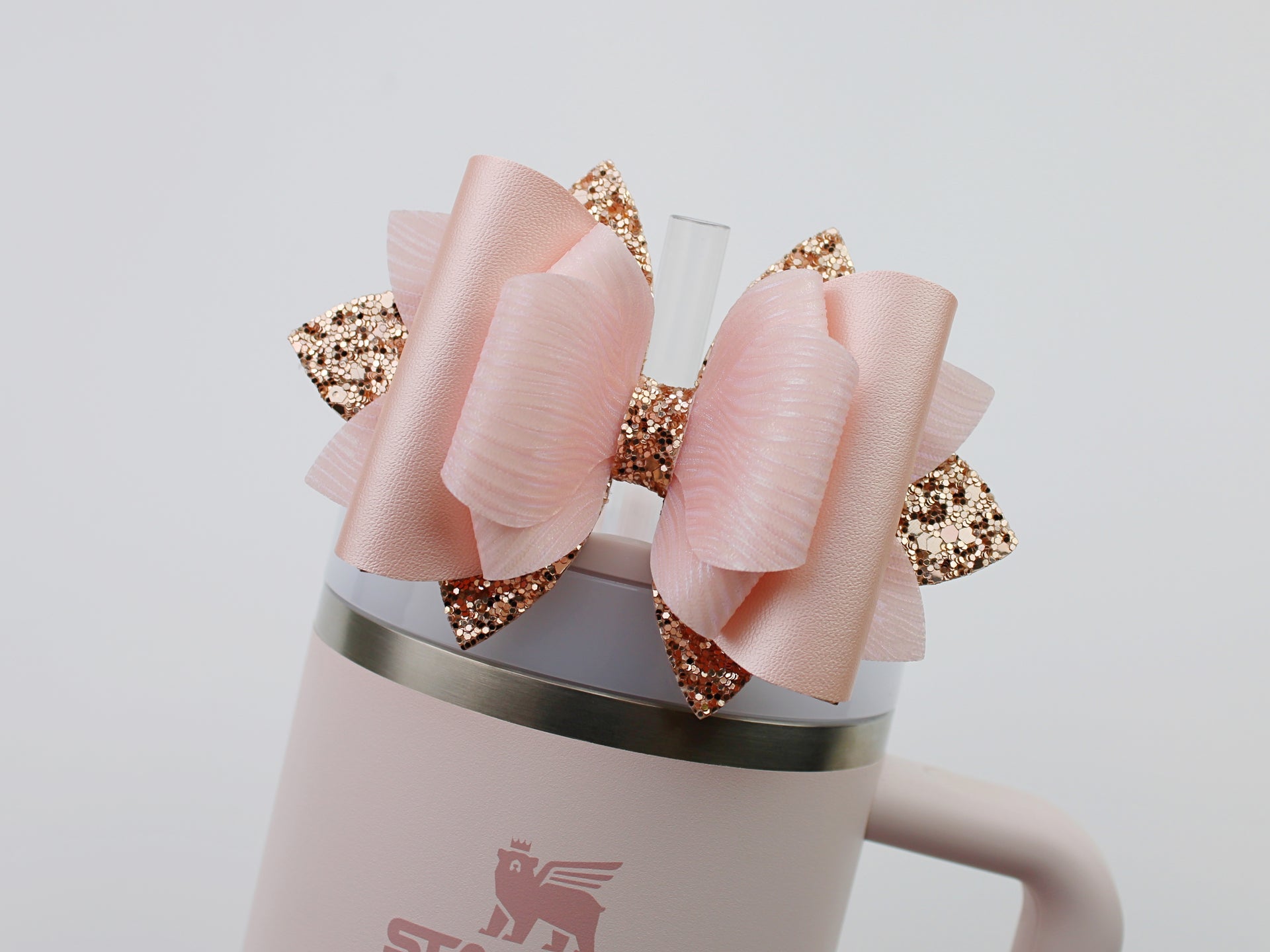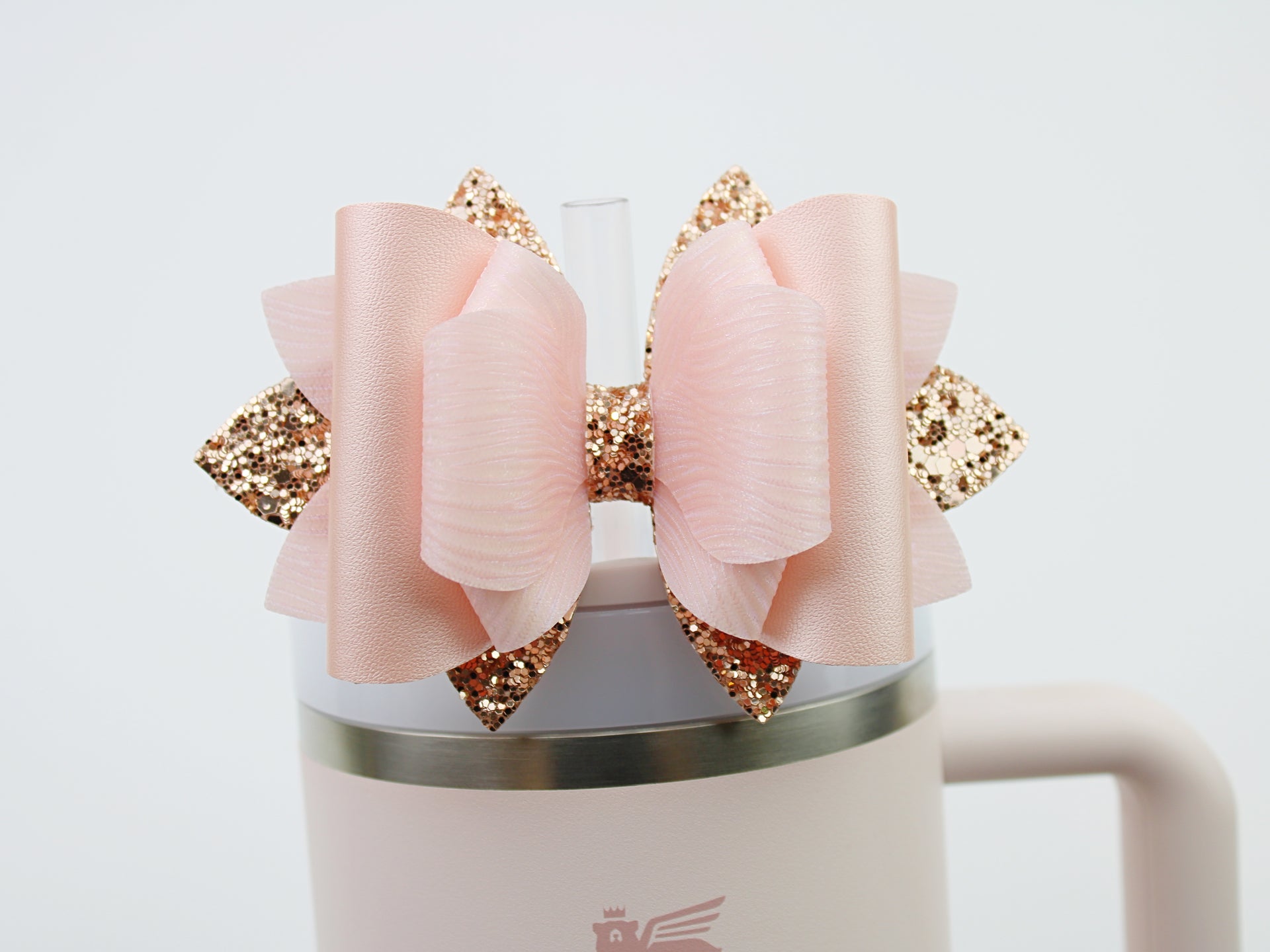 🎀 This Beautiful Bow is made out of faux leather, glitter fabric and designed to fit Stanley straws. Size: 4.5 inches. Each bow is handmade, ensuring a unique touch in every creation. 🎨 Due to screen variations, actual colors may slightly differ. 🎀 This listing is for the bow only.