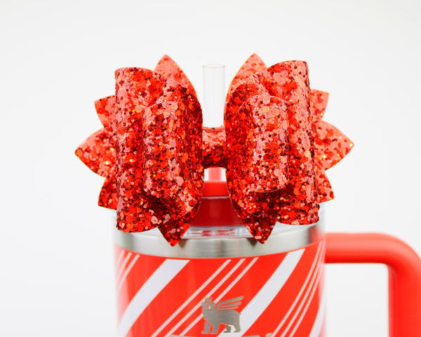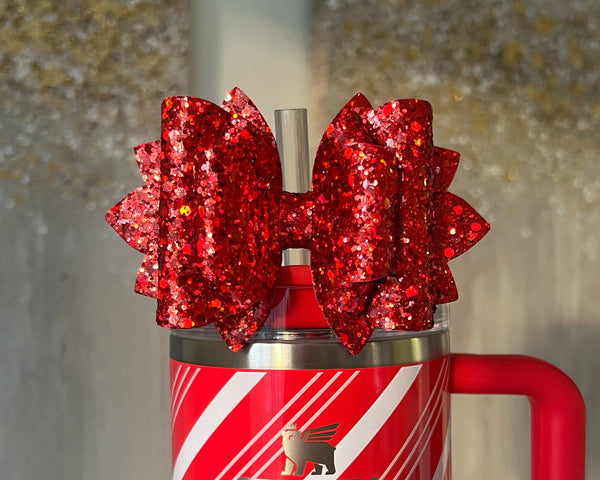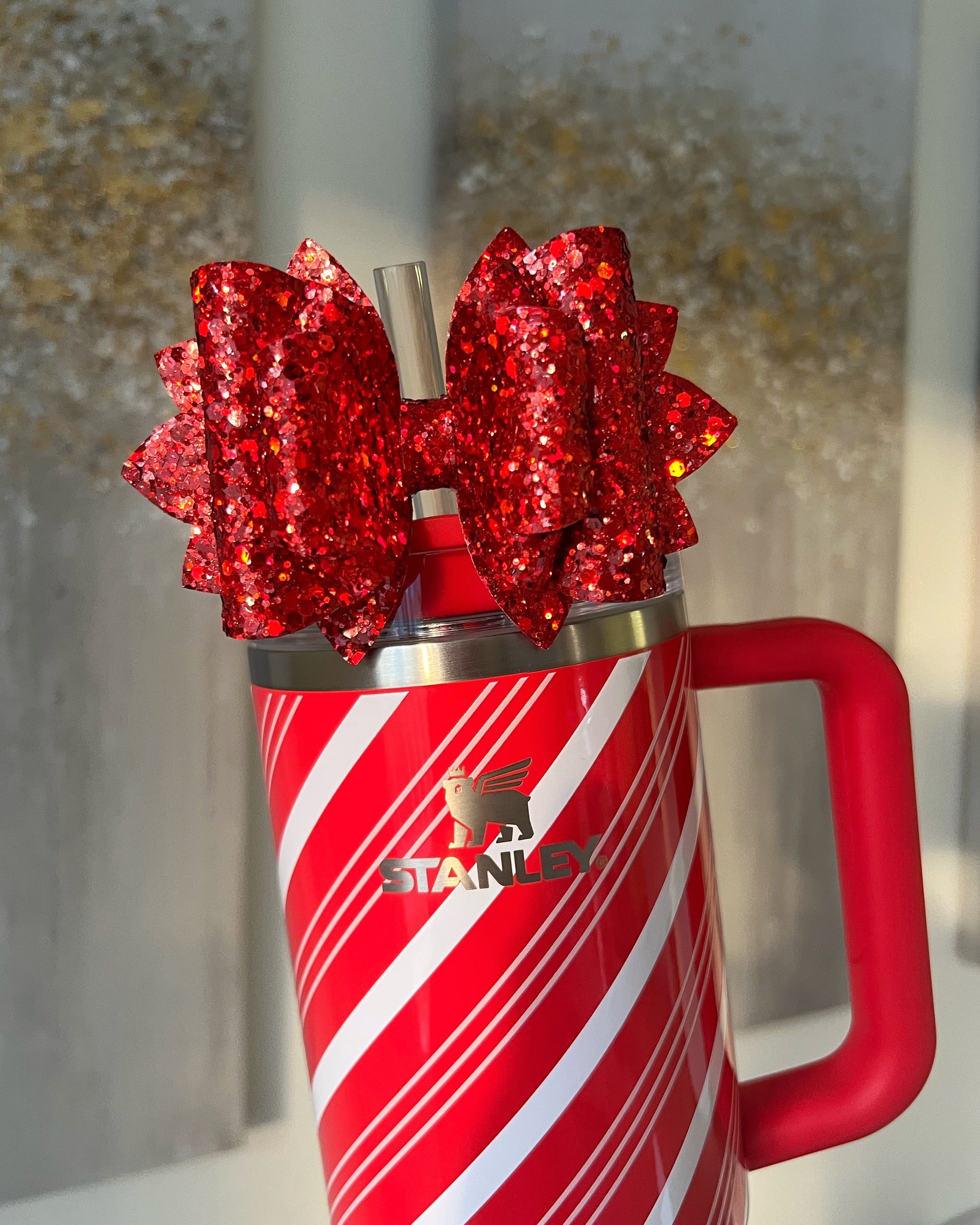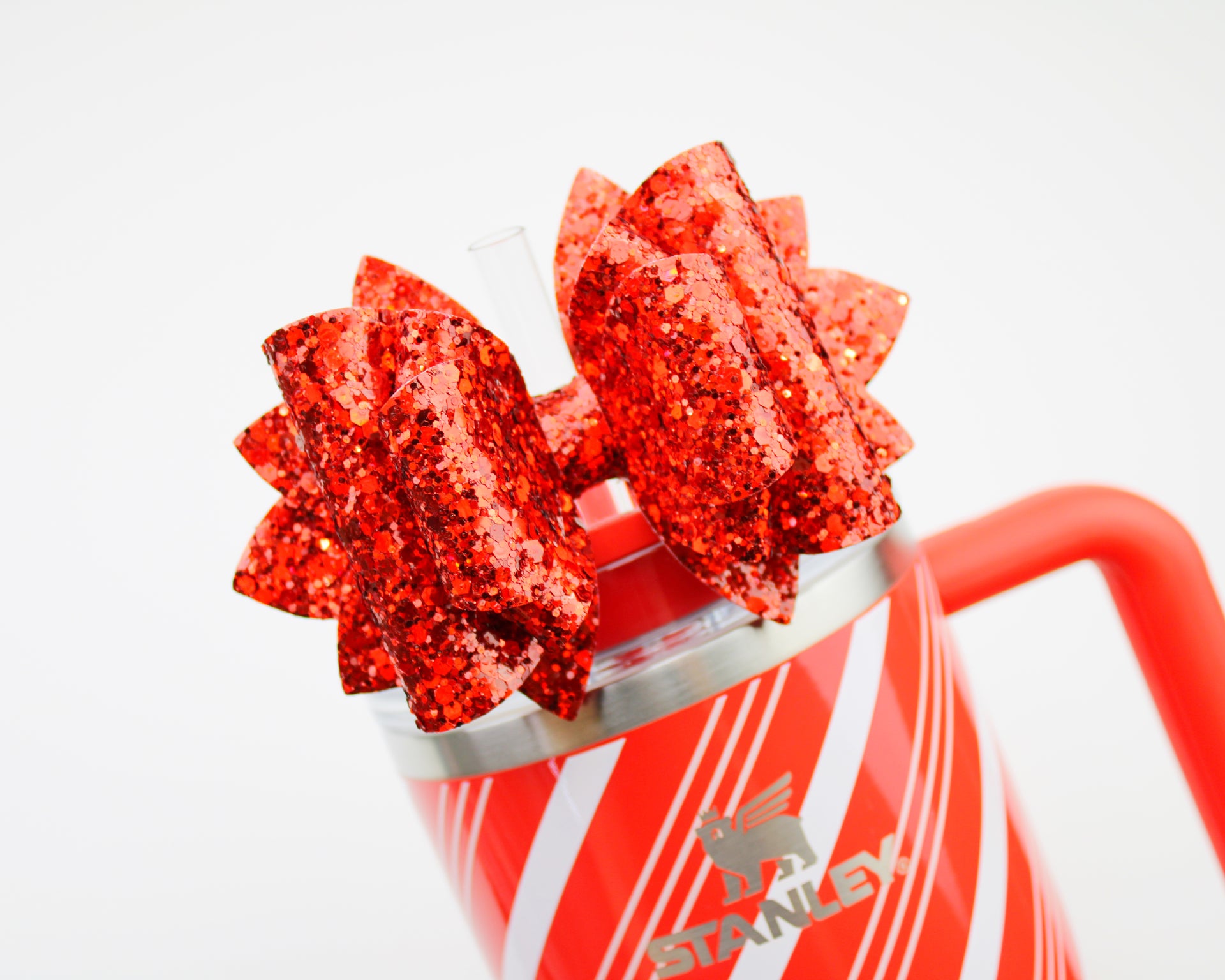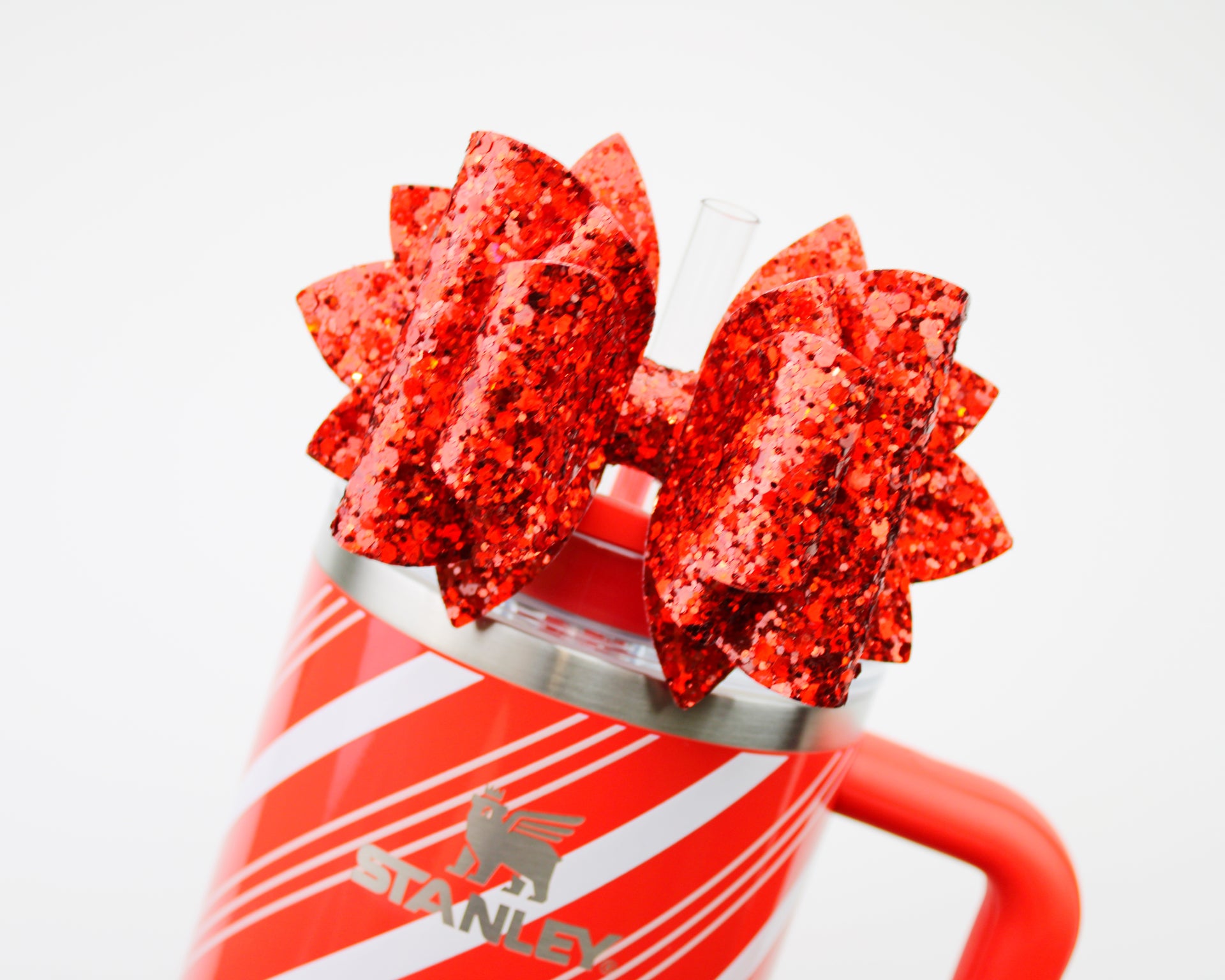 🎀 This Beautiful Bow is made out of glitter fabric and designed to fit Stanley straws. Size: 4.5 inches. Each bow is handmade, ensuring a unique touch in every creation. 🎨 Due to screen variations, actual colors may slightly differ. 📦 This listing is for the bow only.