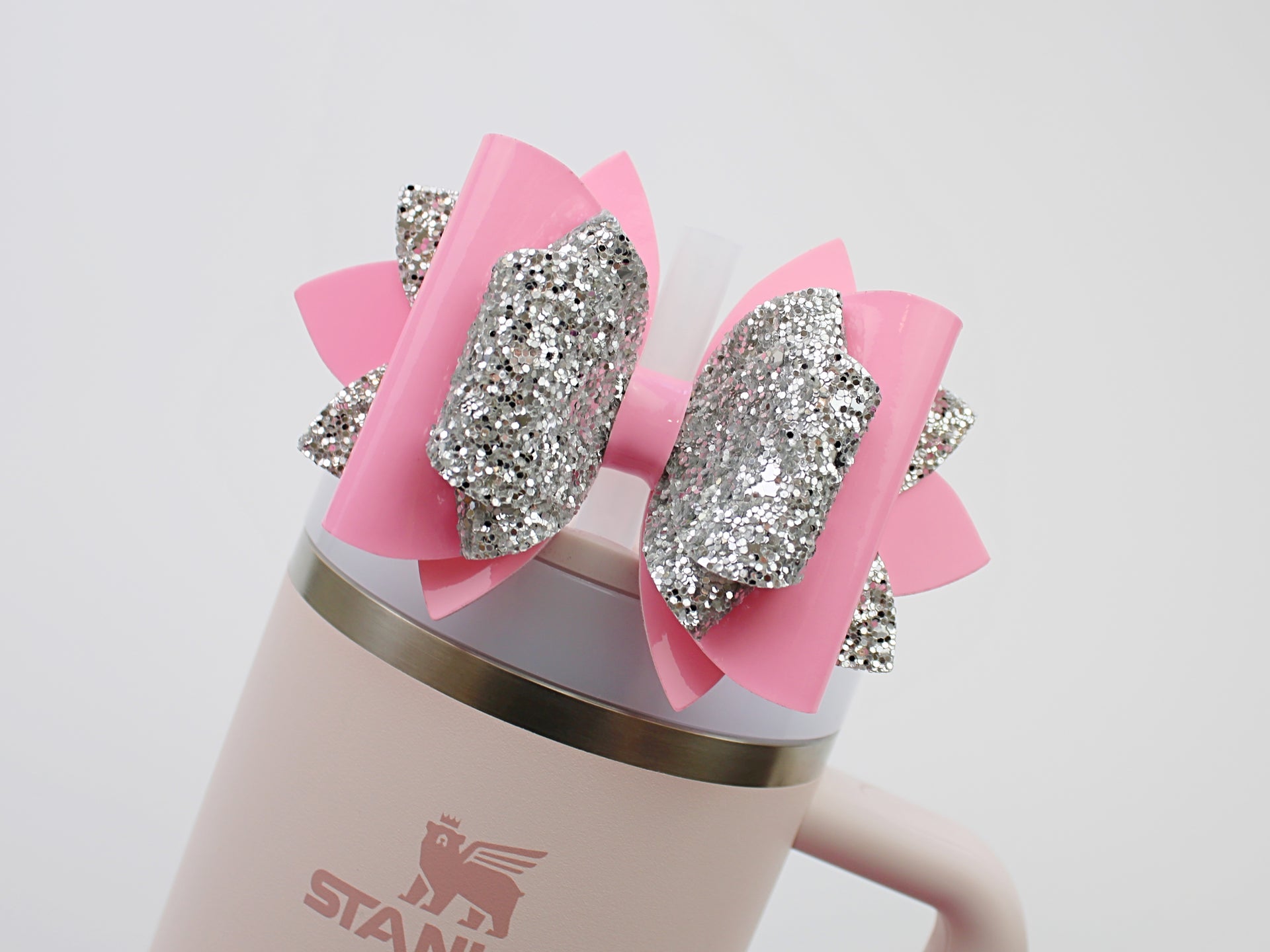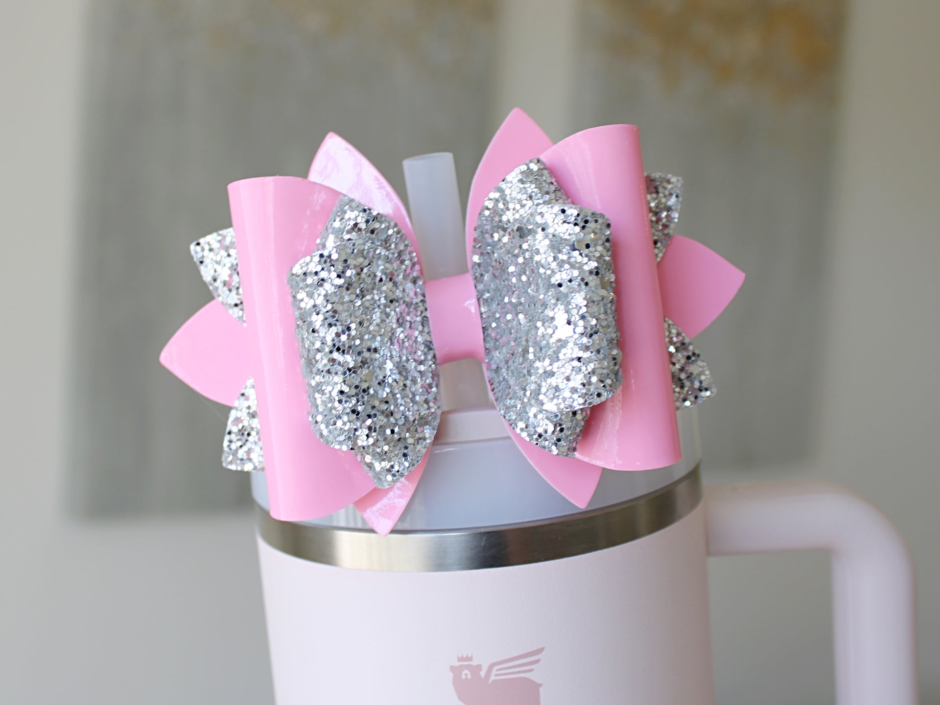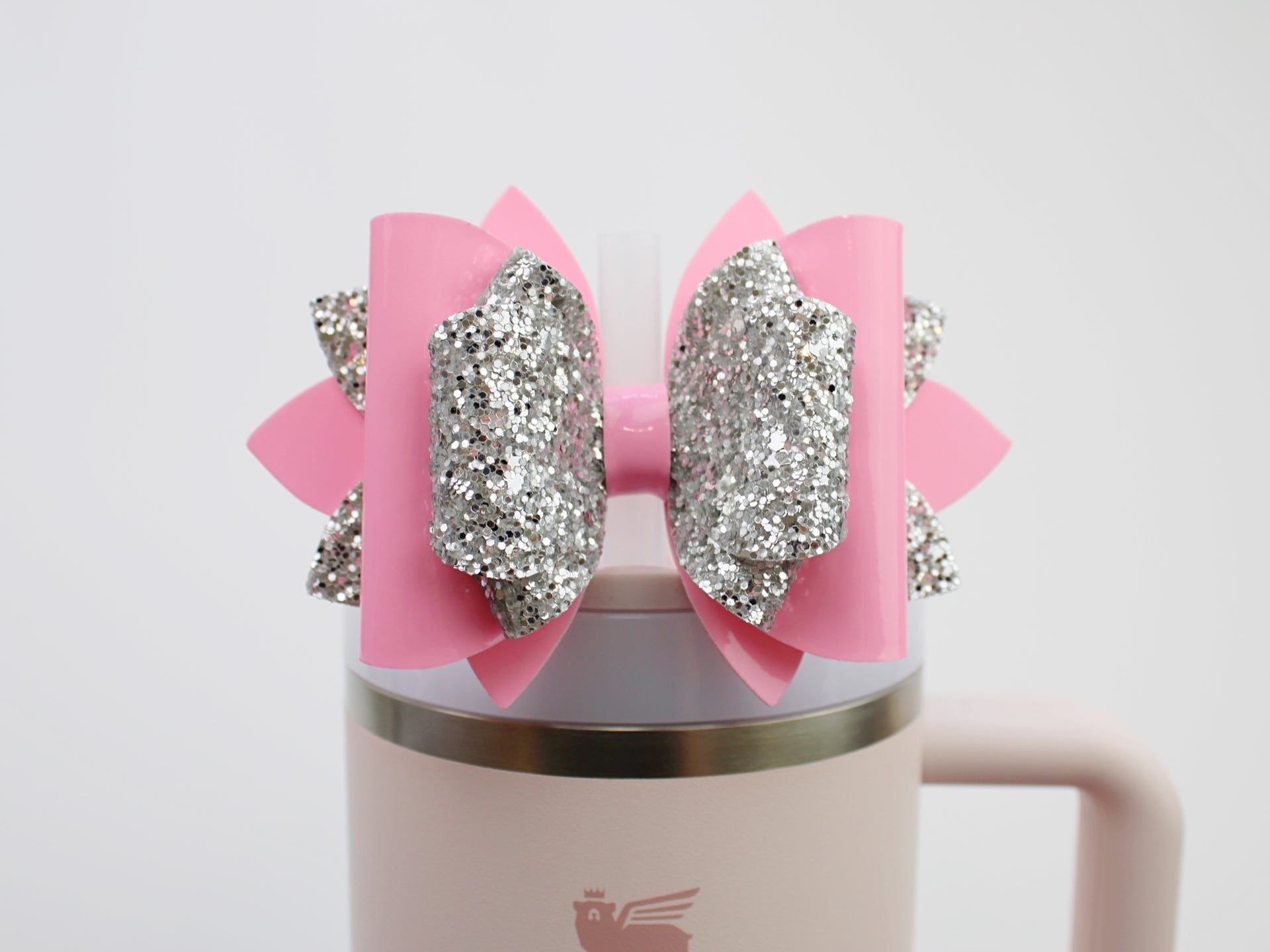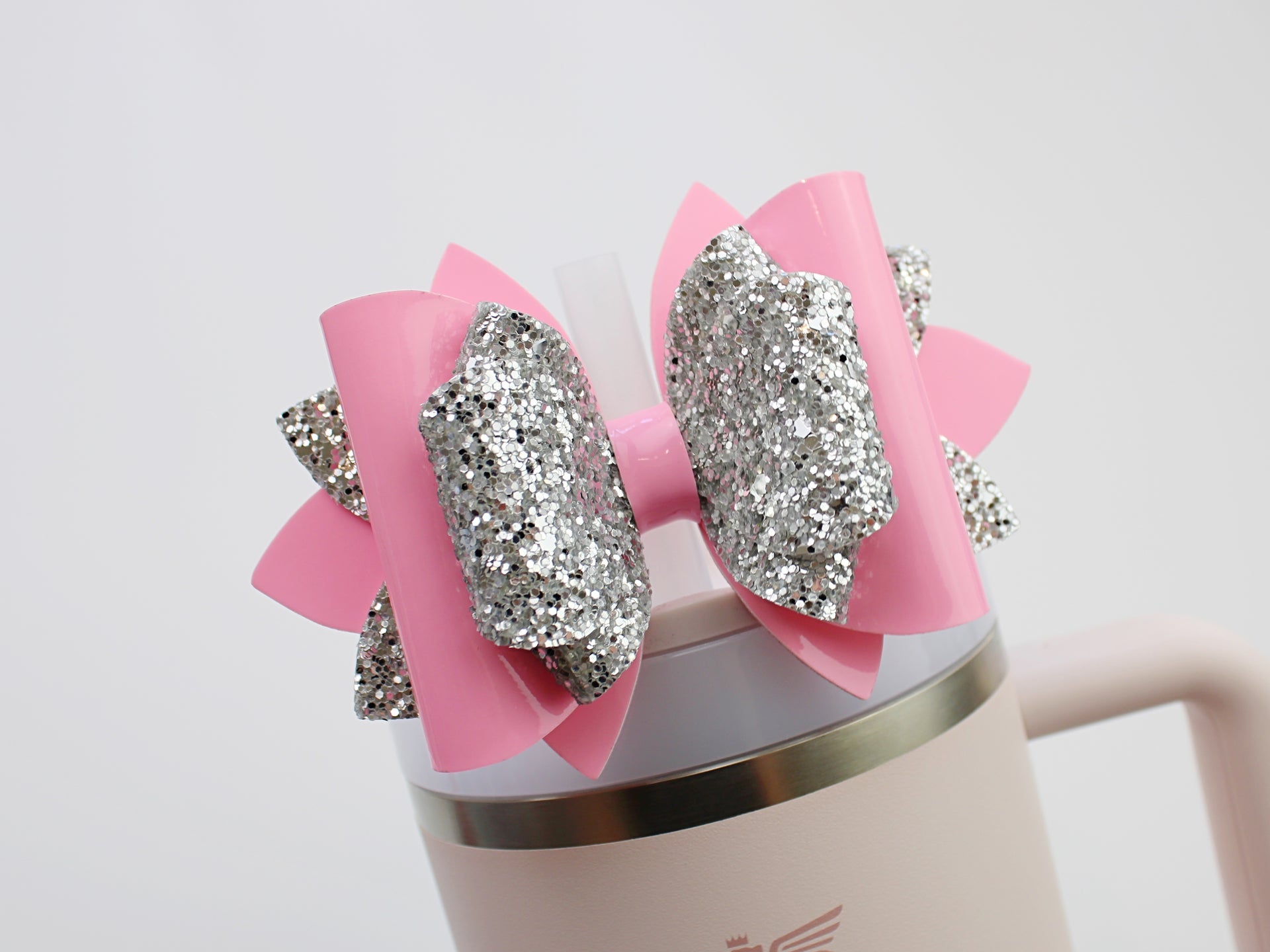 🎀 This Beautiful Bow is made out of faux leather, glitter fabric and designed to fit Stanley straws. Size: 4.5 inches. Each bow is handmade, ensuring a unique touch in every creation. 🎨 Due to screen variations, actual colors may slightly differ. 🎀 This listing is for the bow only.