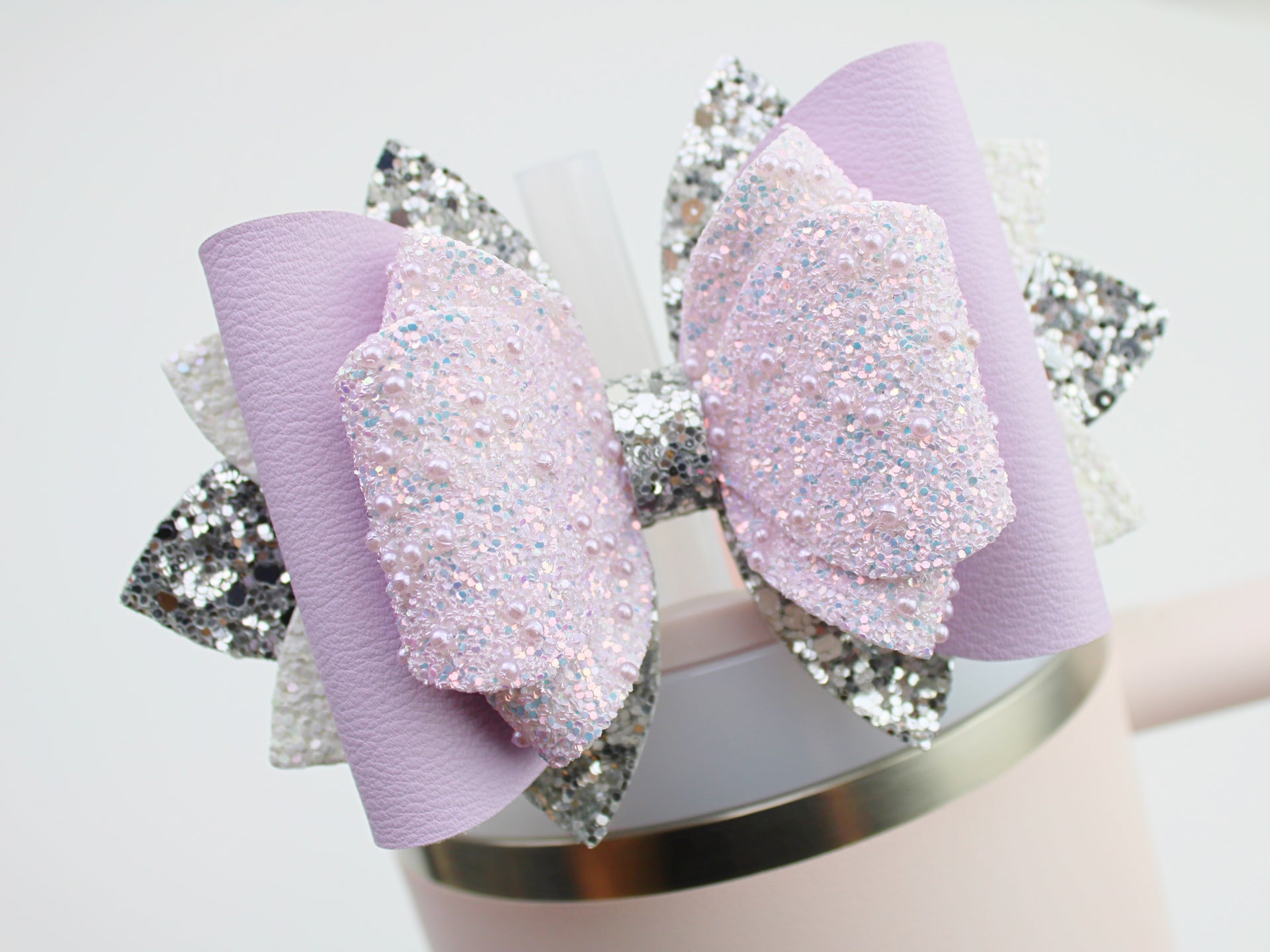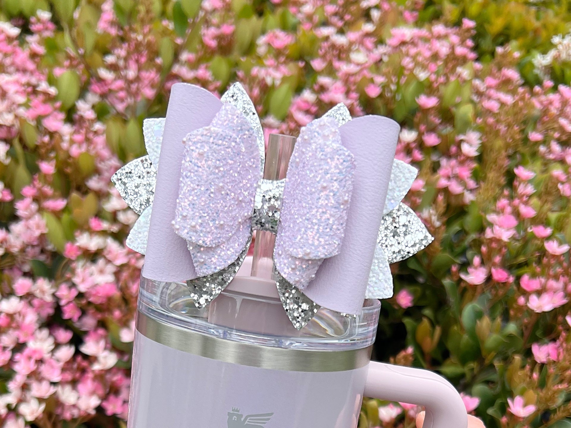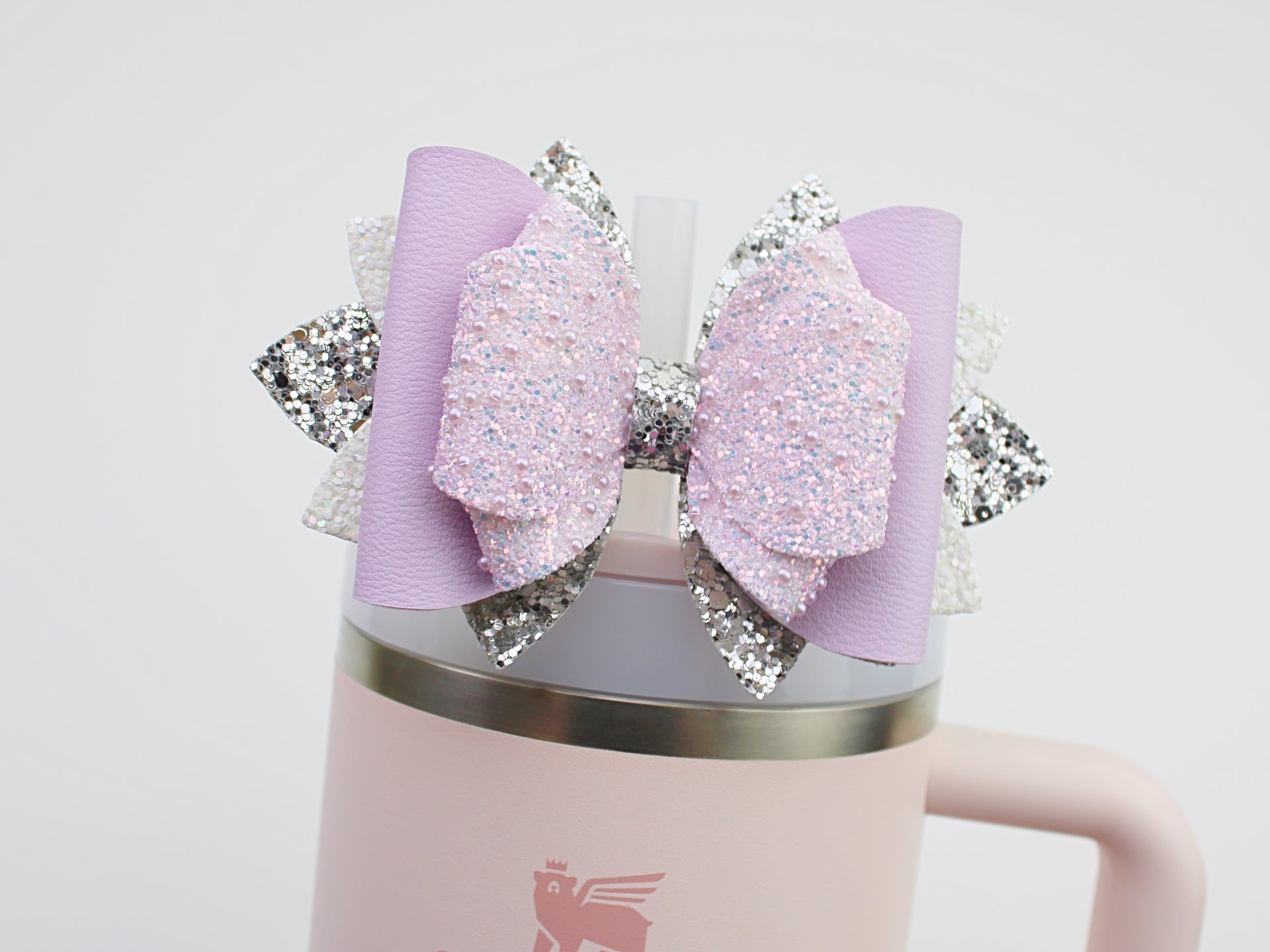 🎀 This Beautiful Bow is made out of faux leather, glitter fabric and designed to fit Stanley straws. Size: 4.5 inches. Each bow is handmade, ensuring a unique touch in every creation. 🎨 Due to screen variations, actual colors may slightly differ. 🎀 This listing is for the bow only.