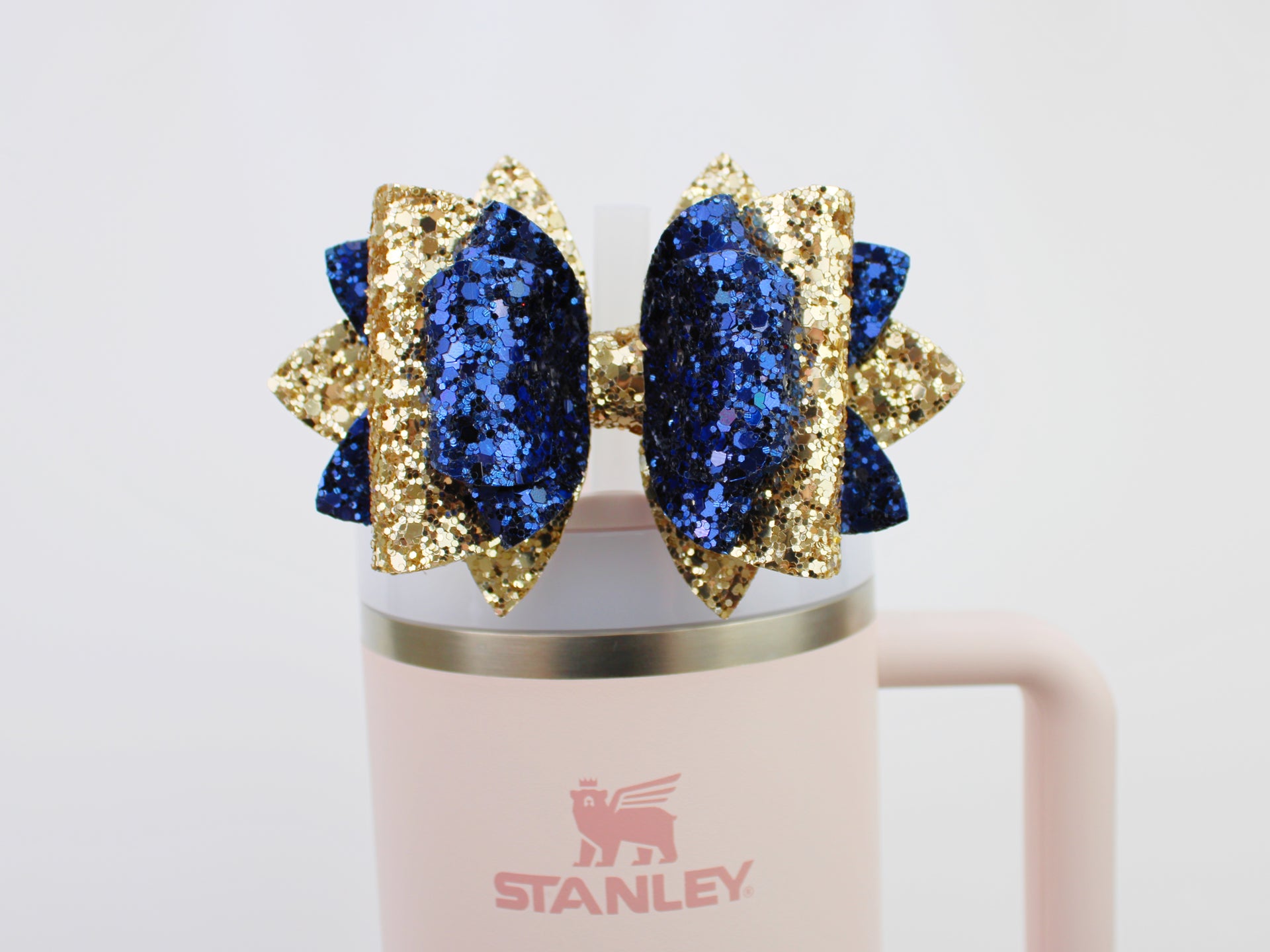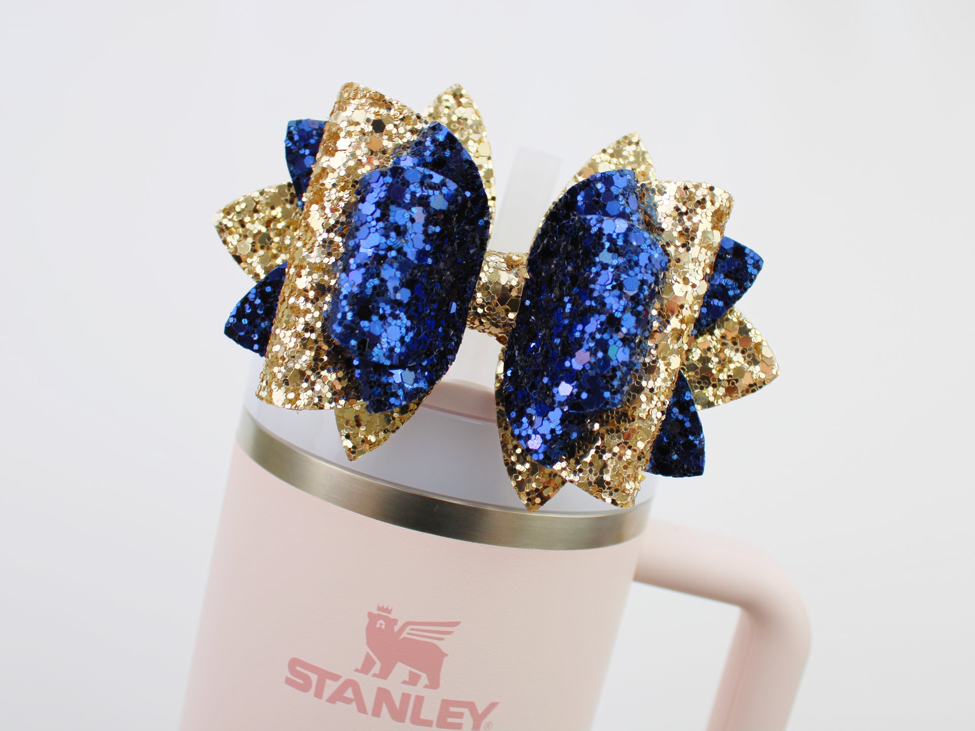 🎀 This Beautiful Bow is made out of glitter fabric and designed to fit Stanley straws. Size: 4.5 inches. Each bow is handmade, ensuring a unique touch in every creation. 🎨 Due to screen variations, actual colors may slightly differ. 🎀 This listing is for the bow only.